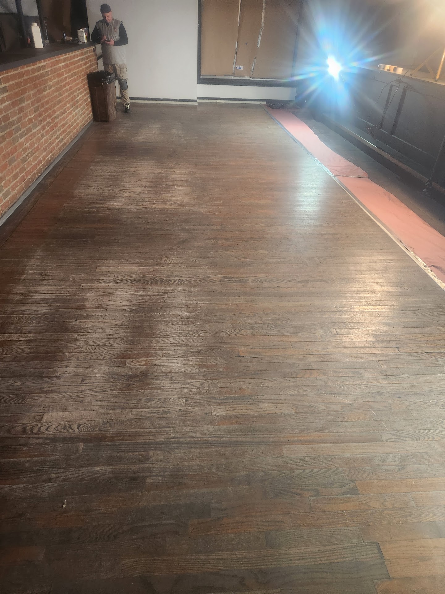 I was hired by Jay to refinish the hardwood floor in the bar in there new venture here in Moline Illinois. The old VIP Bar down town moline.Jay seen my work and contacted me about this new color that I have been mixing and have been having great responses on it.