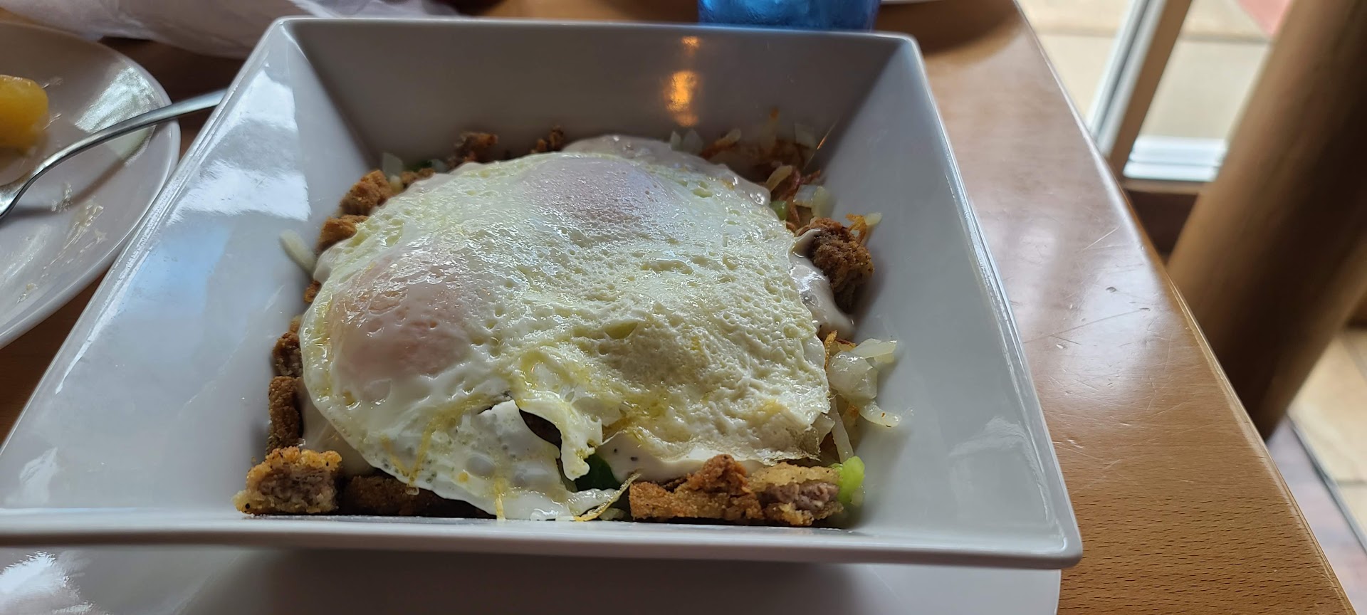 The place was fairly busy at the time I arrived and since I was dining alone, I opted to sit at the counter. After a quick review of the menu, I opted for their Mexican Skillet with sliced potatoes, sourdough toast, and scrambled eggs. It was a bit of a wait for my food - close to 45 minutes. This was fine, of course, as the restaurant was very busy. When it arrived, I thoroughly enjoyed my skillet. The eggs were light and buttery, the potatoes a combination of crispy and not crispy, and the whole thing was well spiced to taste like what I imagine a Mexican skillet would taste like.