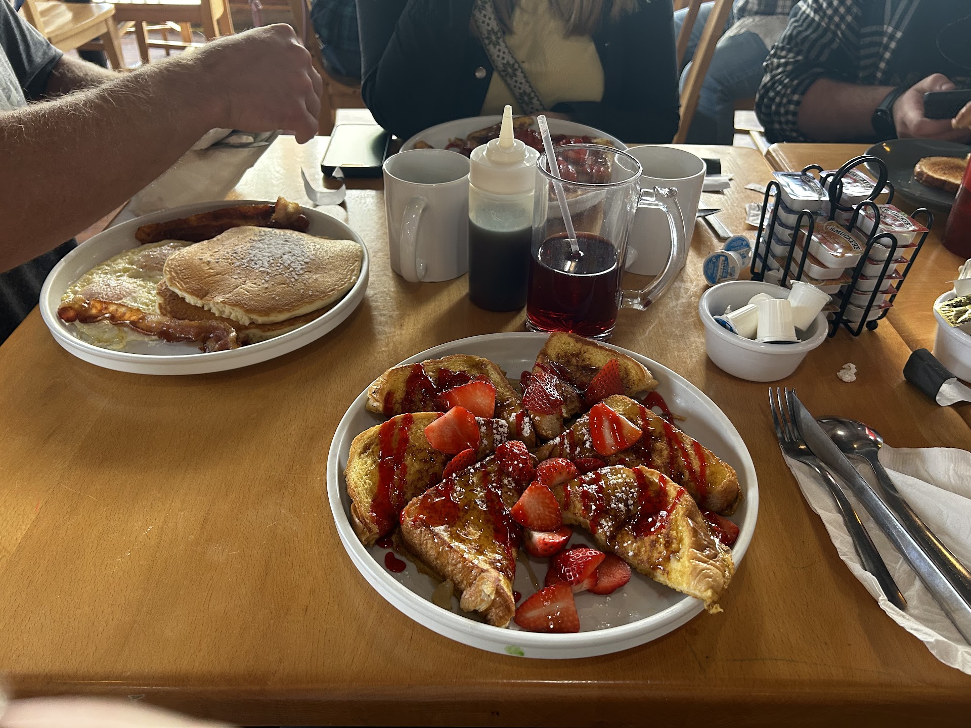 Take two: I was here on a busy Sunday and had a very different experience. We were sat right away and we got our drinks (2 waters and 1 coffee with cream) but then didn't see our server until we got our food which took about 45 minutes. I sat with an empty coffee for at least 15-20 minutes. I ended up sharing my water with my fiance because he ran out of water. When a refill on coffee came around (not from our server) they poured the very last of the pot into the cup and it was burnt coffee. The eggs were missing from my meal, I brought this to my servers attention who informed me they would be out shortly. Not a huge deal but I like to mix my eggs into my food and then eat so the already lukewarm food got colder while I waited. The person who brought the eggs out slammed them on the table saying is there something wrong like it was an inconvenience that I questioned where the eggs were. I had just said No? I was just waiting on my eggs after she slammed the eggs down and I didn't get my entire sentence out before she walked away. When the server brought out the food without the eggs I waited until she asked if there was anything else she could get before I asked where the eggs were, it's not like I didn't give her a chance to set down all the plates before questioning where they were. I specifically waited thinking it was just coming a little after but when she asked if everything looked good of course I'm going to ask about the eggs. Maybe she didn't mean to slam the eggs down but she acted like it was an inconvenience she had to bring them out. Just left a bad impression after already waiting so long for the food and having to sit with an empty cup of coffee. I probably could have forgiven a long wait if the service would have been better. I get anxious and I'm probably overthinking the entire thing but it stuck with me enough that I'm actually writing a review. Even the table next to us was commenting on how long they were waiting to get their food. I was going to ask for a box but it took too long for someone to come back to the table I gave up and stacked the plates hoping to at least get someone's attention to get the check. After waiting 45 minutes for the food and then having it be just okay and then being treated poorly felt like a waste of money and made me wish I made food at home.