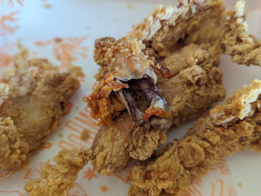 Finally, I gave up and one of the staff put together a box of white meat chicken - NOT what I ordered OR desired - and I left some 50 Minutes AFTER I placed my order for thighs. The other items had been there since I arrived with no fresh fries, chicken (of any kind), bisquits, etc. That staff profusely apologized but I had a three hour drive home and hadn't eaten since early morning. Coincidentally, as I left the manager returned and as we passed each other at the door, I informed him that HE has a mess on his...