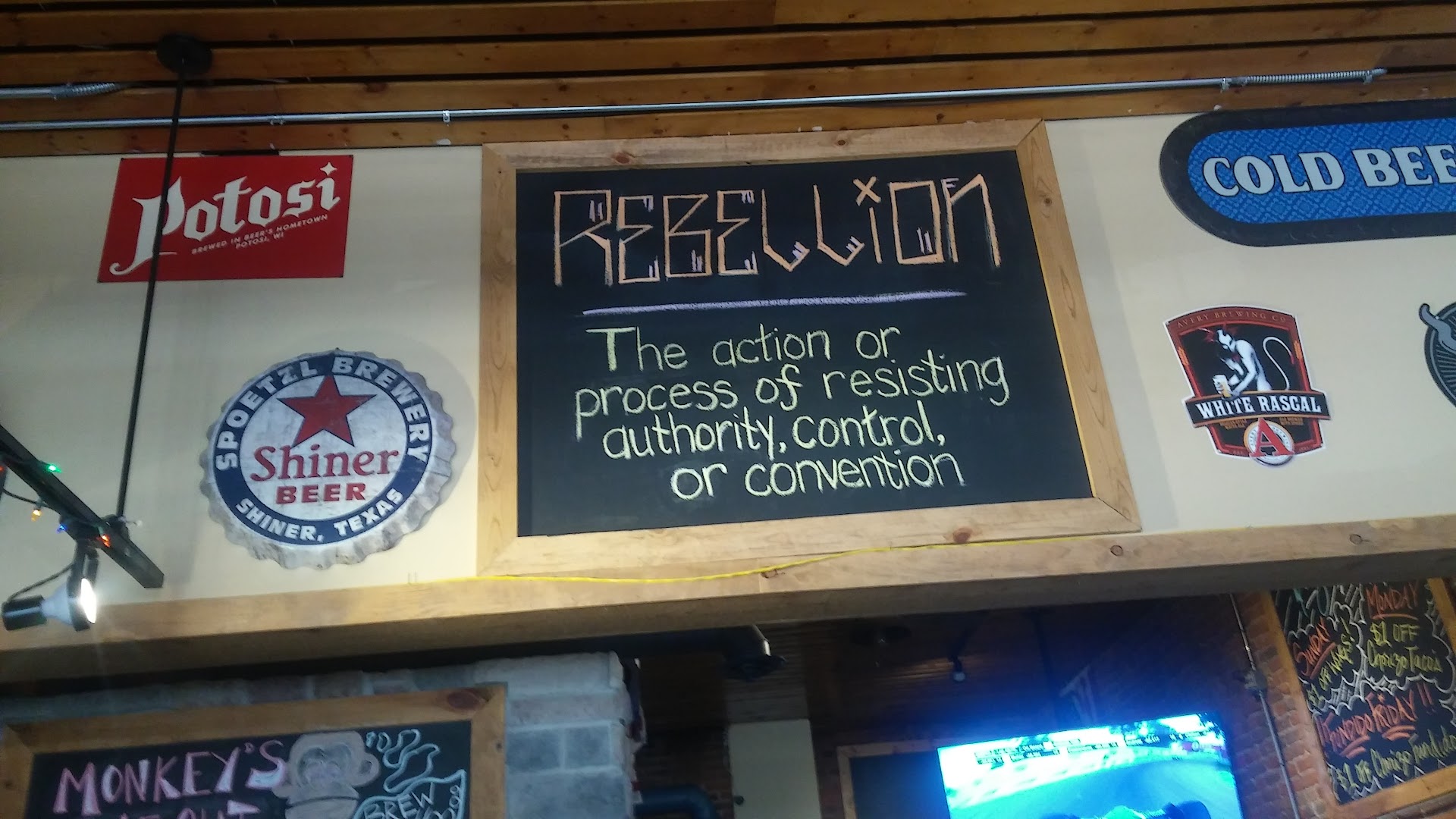 Read moreBoth times I've been to Rebellion have been awesome. The first time I only drank some beers but the bartenders were friendly and knowledgeable about the different beers that were on tap. My friends got the street tacos and were satisfied. The second time I went with a friend who is particular when it comes to his beer (not a snob just picky.) The first recommendation from the staff was his drink for the rest of the evening. We then ordered some street tacos and some honey chipotle wings. The wings were seriously some of the best I've ever had, sweet but with a nice kick. I will definitely be...