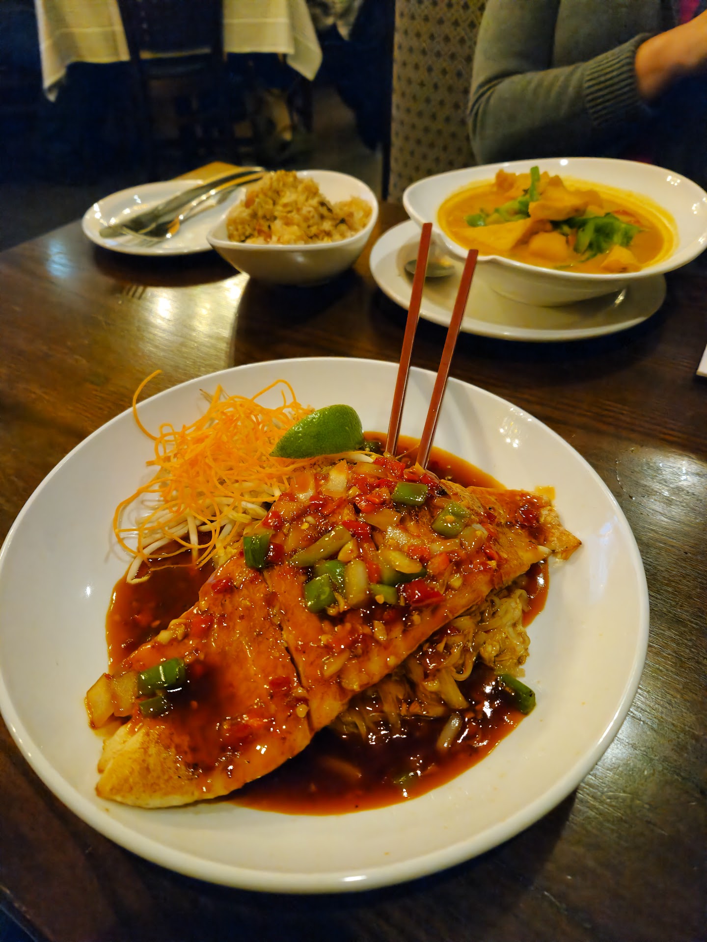Read moreWonderful atmosphere, great for a romantic date, or those looking for an upscale dining option. This restaurant deserves more attention! It's s location is excellent and easy to access, right on the river road by Ben butterworth parkway. We started with the Tom Kha soup, which had many flavors going on, slight hint of coconut, lime, cilantro, with a kick of spice. Was great to share together! Next we tried the Baked Oyster Rockefeller, which is a sauteed spinach tipped with garlic and cheese. Fantastic taste, and seemed very fresh as well. My wife and I can get grilled oysters in China where she is from very cheaply and really, but here in the midwest they are a luxury, and on the expensive side. I would have loved to order multiple plates and tried their different recipes. My wife tried the Pad Thai, which seemed fairly authentic. She enjoyed it despite being very picky about what she thinks makes a good Asian noodle. I ordered Pad Prik King with pork. The sauce is very curry like, but also similar to a satay soup you might find in a hong Kong diner. All I know is it was aromatic and incredibly flavorful, the pork and green beans were wonderful. Excellent service, excellent chef in the kitchen. I highly recommend anyone looking for good Thai dishes or something different to...