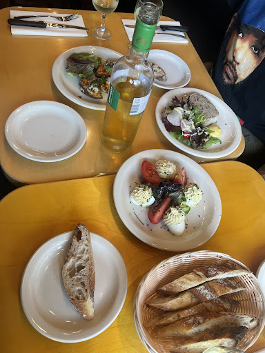 Love the idea and menu and approachable prices but it was not 10/10 for me. First, I wish they could add just a few more tables. Second please cut salt across the board. Chèvre is salty anyway and although the dish was tasty it had a lovely but rich dressing that overpowered the rocket and tomato. The onion soup was nice, interesting flavor but unfamiliar (perhaps more of a bone broth ?) versus traditional and quite salty, and though it was tasty it had not quite enough onions or bread to balance it. Ditto the beef bourguignon, tasty, beautiful, and obviously lovingly prepared but super rich and salty, without quite enough vegetables and potatoes to take the sauce up and cut through. Also we tried the steak (wish there was an entrecoute option) and the steak sauces were (again) super tasty but frustratingly rich and salty. The Roquefort sauce was super interesting notwithstanding its intensity. French bread is important and although not a French-style crusty loaf it was delicious and well made. Loved the unusually coarse pate, which was balanced and tasty. The fish is a Yes, a beautiful meal but the sorrel sauce was again intense, I was told it hit you on the first bite. Everything else was great. They are still new and calibrating, and we will definitely go back. It’s like nothing else and...