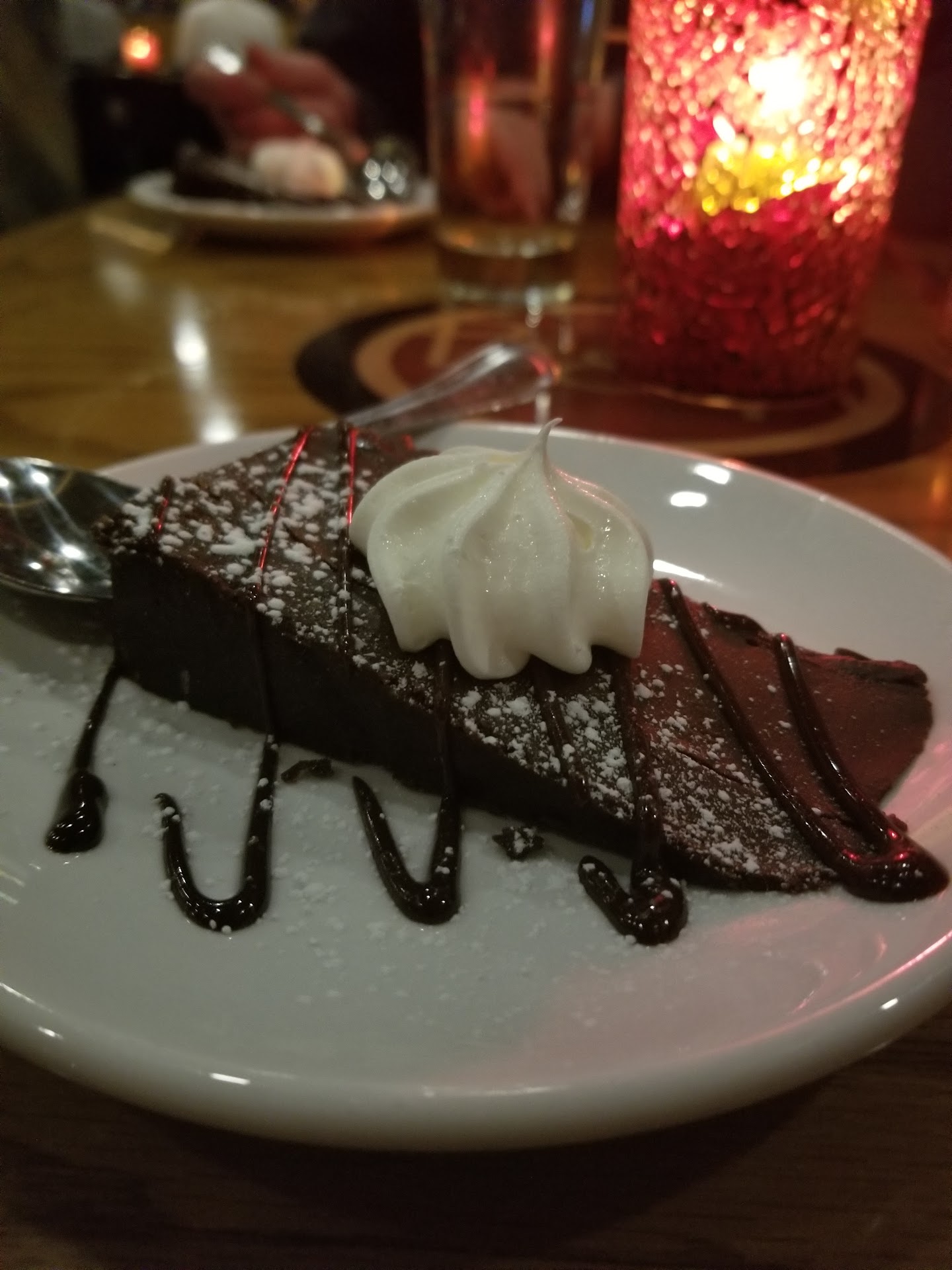 And the gluten free chocolate cake. When it came out, I started laughing because the pieces were so tiny. But it makes sense based on how disgusting it was. I couldn't eat more than 2 bites. It tasted like (and had the consistency of) a chocolate keto protein bar. It was rich, but gross.
