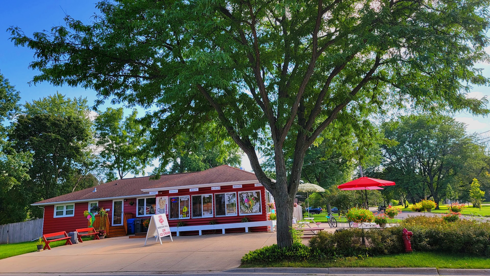 We are from out of town. There were 4 of us. Came to Madison on July 4th to ride around Monona Lake. It was a nice, but very hot day, 86 degrees. Got halfway around and came across this cute little ice cream shop. And that fact that they serve UW-Madison ice cream was a bonus.