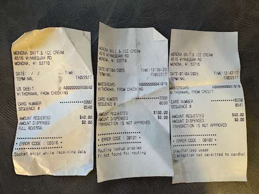 We were the only 2 groups in the shop, trying to get the ATM to work. The 3 staff people could clearly see what was happening. They had no other way for us to pay for our purchases. But it's not their fault, right, it's not their ATM machines.