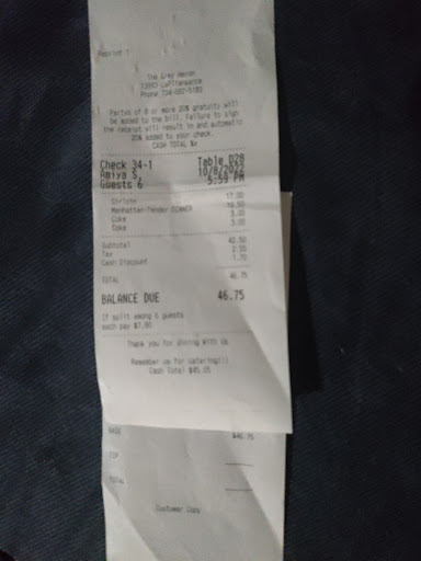 Ā Ā Ā Read moreWe were part of a 35-40 person party at 7:30 pm on a weeknight with reservations. We arrived and were greeted by several waitresses who took our drink orders. Within about 10-15 minutes people had started to order their dinners. They had a shortened menu for the party. Now mind you the rest of the restaurant was basically empty there was a couple people sitting at the bar. The table I was at the people ordered 3 French dips, 3 Cobb salads, 1 Cheeseburger, 1 Perch dinner. The food was prepared in a mixed up order some tables would get 1 plate then another table would get a plate. One person at our table got her food an hour before anyone else. Then the salads came out, about half hour later the 1 of the French dips came out. My sister in law and her mother both ordered the French dips and took 2 HOURS along with my Cheeseburger. We werenāt even the last people to receive our food there was a little girl about 10 who still hadnāt got her dinner at 9:30! There was several people who asked for the dinners in a to go box because of the time. There was 3 at my table alone! I donāt blame the wait staff they were extremely apologetic about what was going on. But extremely poorly ran and I will never go back and I donāt think anyone from the party will either. Oh not to mention when I got home and finally tried to eat my cheeseburger it was so overcooked I took one bite ate a couple of fries and tossed in the trash! Now the manager did take 25% off a couple meals but that in no way...