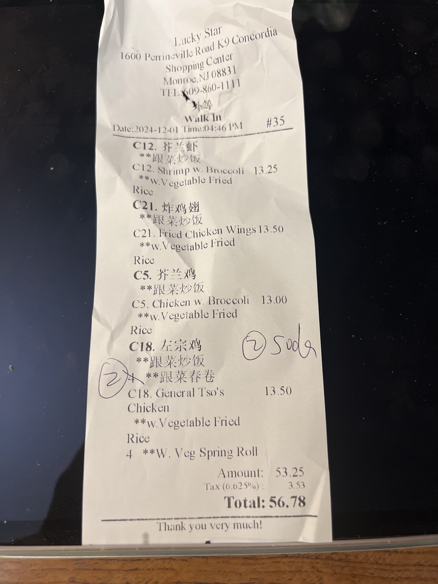 Let's start with the food, because that's the most important IMO. It was not terrible, but I can't rate it much better than "adequate". The sesame chicken was praised in other reviews, so I ordered that. The flavor was very good, but the chicken itself was on the tough side. And the fried rice that came with it was OK, but drier and less flavorful than what I am used to elsewhere. The hot and sour soup was, again, not bad but not great. It may, as some reviews have said, be the best Chinese food in Monroe Township, but I'm used to better in Monmouth County.