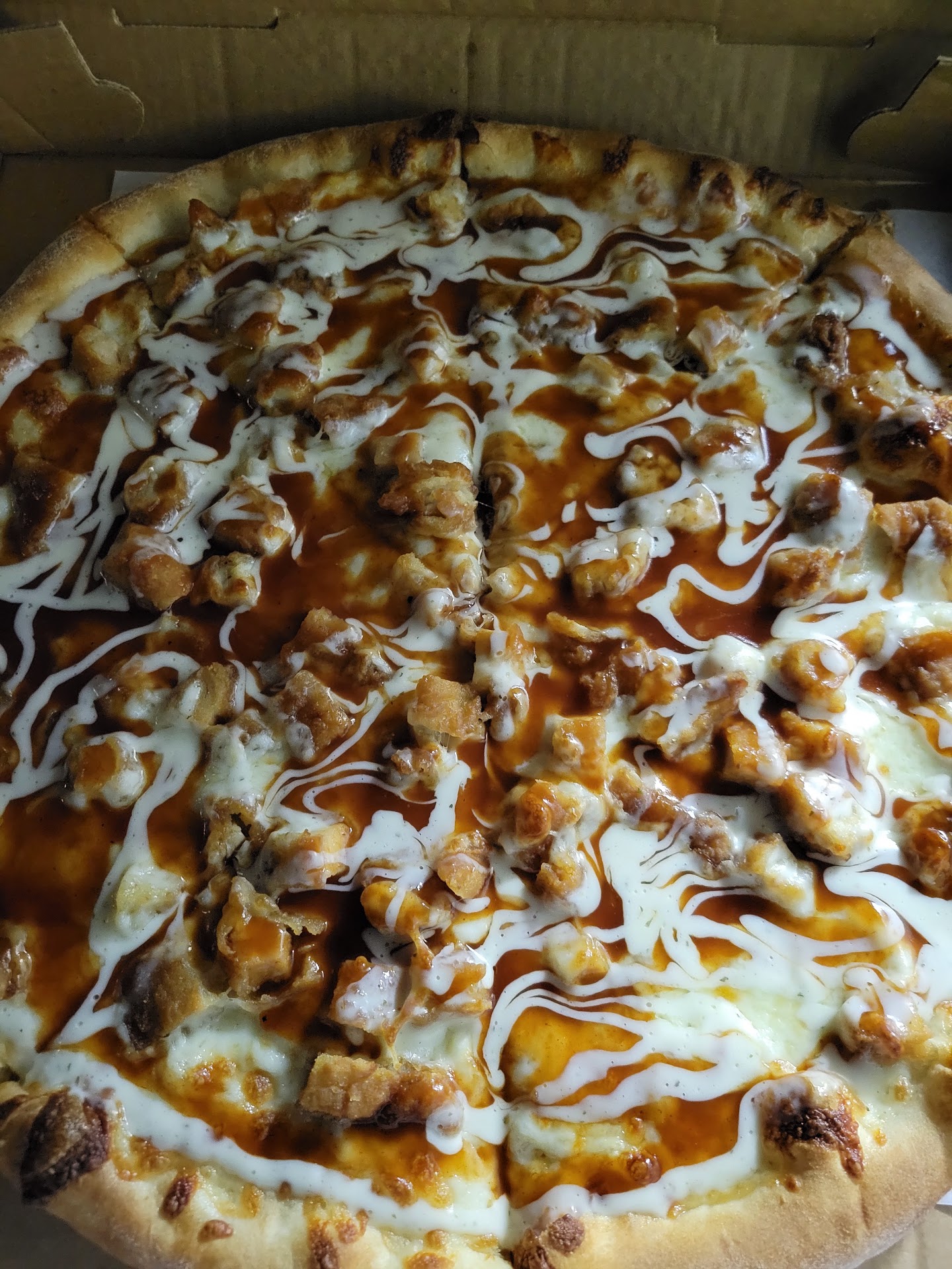 #1. Original Review: March 2nd, 2022 - My fiancé and I stopped into Milanos tonight for some take-out. Upon arriving at Milanos, you are greeted by the very nice manager and pizza chef (possibly the owner or their son, as well), and courteous counter staff. Everyone is very friendly and in great spirits, it's a happy atmosphere. He suggested some specialty pizzas and we decided on the "BBQ Chicken Pizza" with a side of "Funnel Fries" (pictures included :warning: instant hunger alert will betrigged). While standing waiting for our order, the manager referenced for us to sit and enjoy our wait in the Milano Cafe. 🍕
