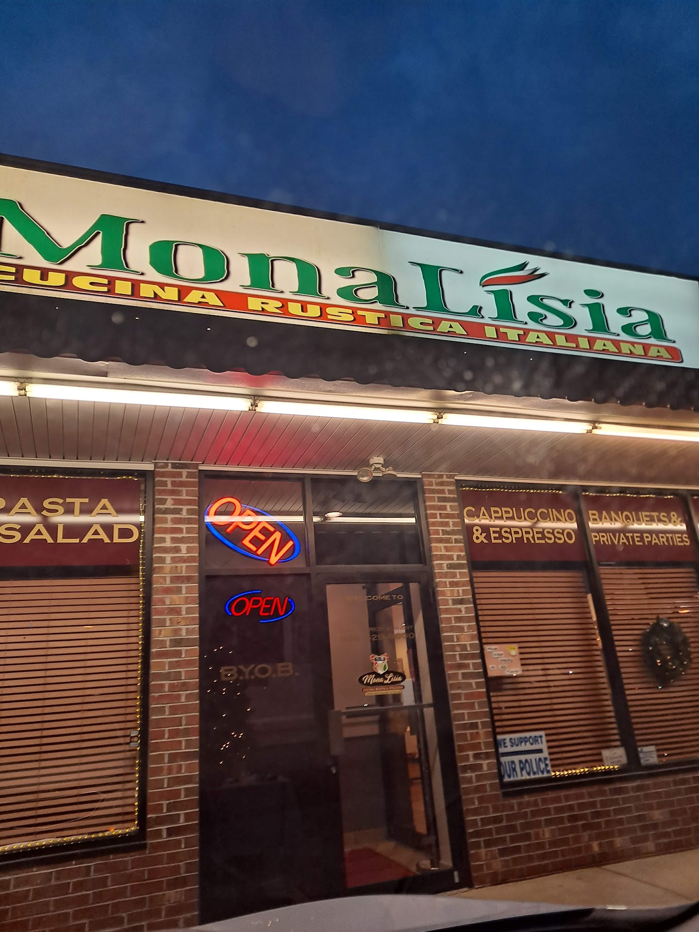 Read moreMy review is based solely on customer service and not the food as we did not get a chance to eat here. When we arrived there was about 10 empty tables. The hostess asked if we had a reservation for which we did not. If at this point she would have stated that they only accept reservations I would have totally understood. She did not. Instead she asked us to have a seat. She proceeded to walk around the restaurant and the empty tables for about ten minutes. She then came back and said she would have no idea when they could seat us as they were holding all of their tables for reservations and if someone got up she could possibly seat us but it might not be for hours. Of course we are not going to wait for hours do I politely said no thank you we will go somewhere else. At this point she said good luck finding a restaurant without reservations. I did find another very good Italian restaurant for which we were able to be seated. I feel the customer service was lacking at Mona Lisa. If you only accept reservations that is understandable but we were treated like unwelcome guests who if they could they would try to fit us in but expected us to wait with no idea how long. This is an unreasonable expectation for dinner. Either you only accept reservations or you try to give an estimate of the wait . I could not wait to try this restaurant but sadly will...