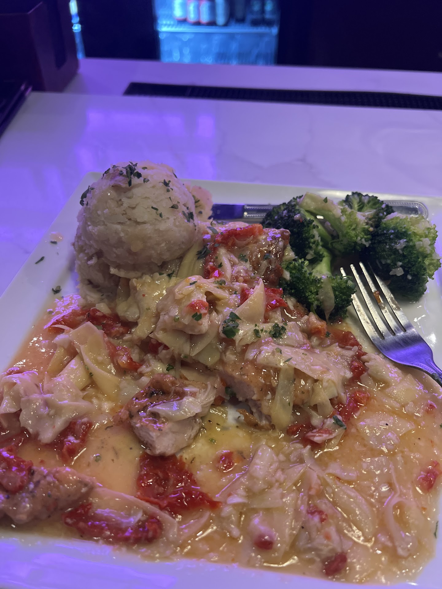 For main we both ordered Petite 5oz Filet Mignon with sides Whipped Potatoes, and Broccoli Spears. My advice is to dip a piece of the Filet Mignon into the Whipped Potatoes, you wonāt regret it! Broccoli Spears perfectly seasoned.