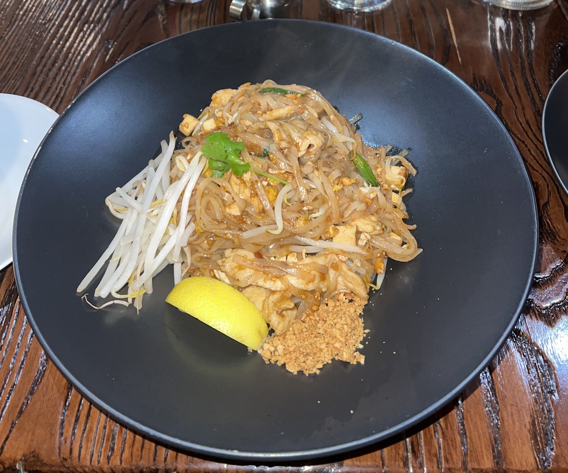 For mains, we ordered shrimp pad thai, beef green curry fried rice, and Goong Pra Ram (shrimp with peanut-cashew sauce). The pad thai was excellent, and at $16, shockingly affordable compared to most places around here. The Goong Pra Ram leaned on a peanut-buttery richness, and while the shrimp could’ve been bigger, the flavor carried it. The standout dish was the green curry fried rice—spicy but in a sophisticated, layered way. The heat lingered like a friendly reminder, enhancing every bite without overwhelming.