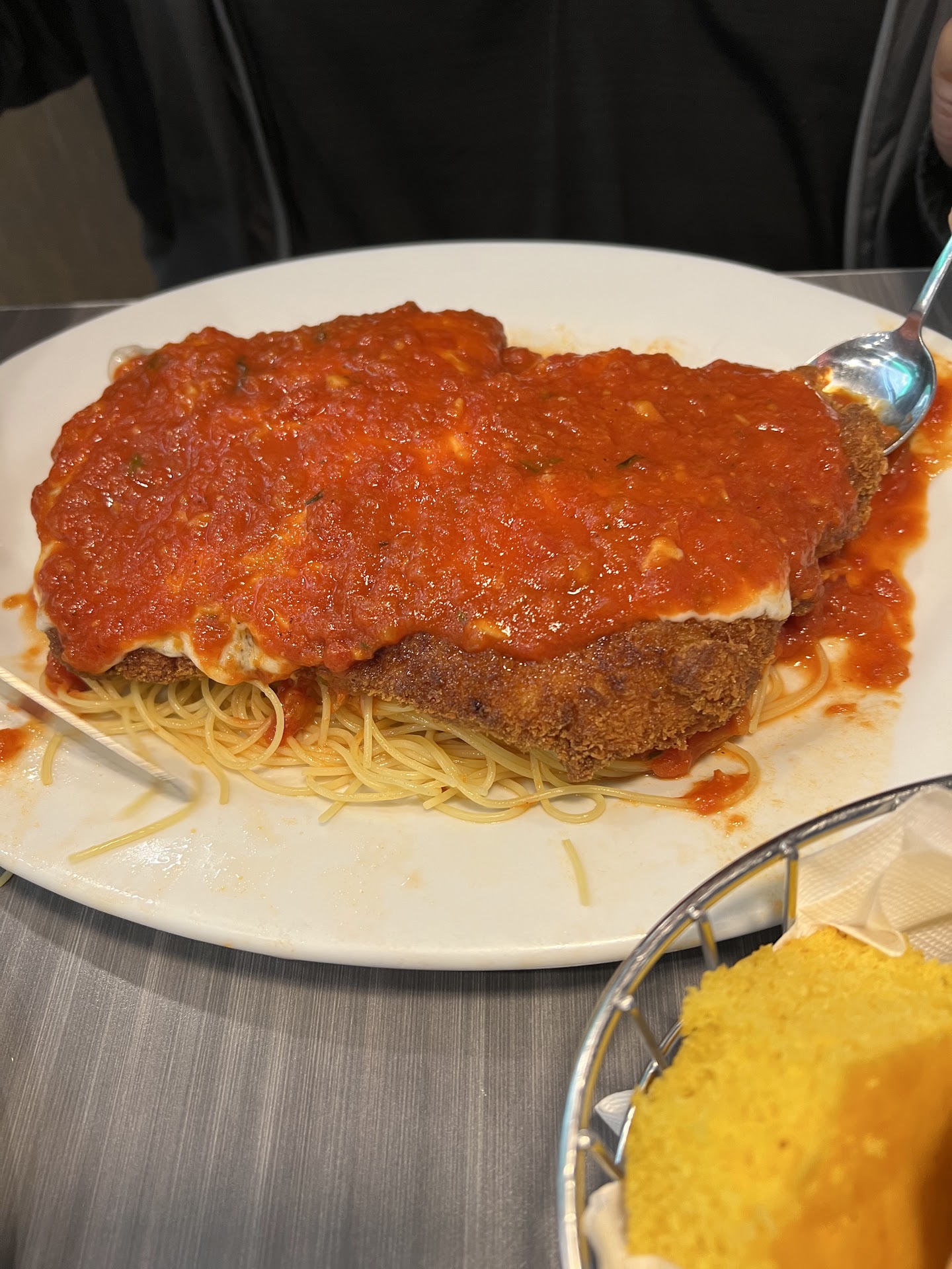 4th time: This time I took my mother out to eat. ( she's been here a few times with other family members) she went with one of her goto meals here, the Stuffed mushroom platter. She got three large stuffed mushrooms which comes originally with green beans and roasted potatoes I believe.( she alternated the potatoes for coleslaw) I got the Seafood cheese tortellini fra daiblo (comes in medium or hot) I ordered hot, but to me it wasn't really hot. Got some red crushed peppers and parmasa cheese to add to it. The dish was pretty good overall.