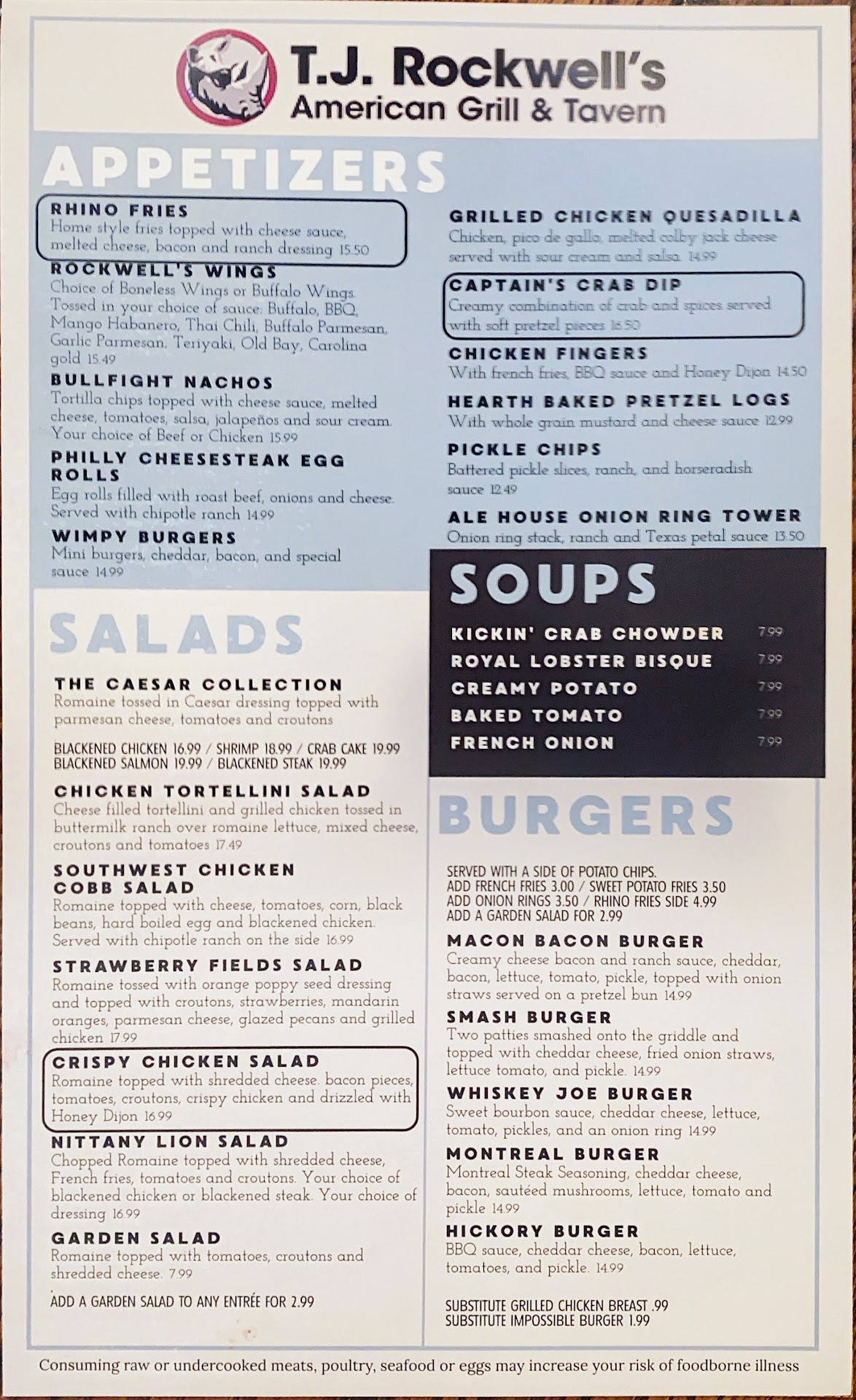 I had heard that T.J. Rockwell's was a very classic American food joint that really didn't disappoint. I had heard wrong.