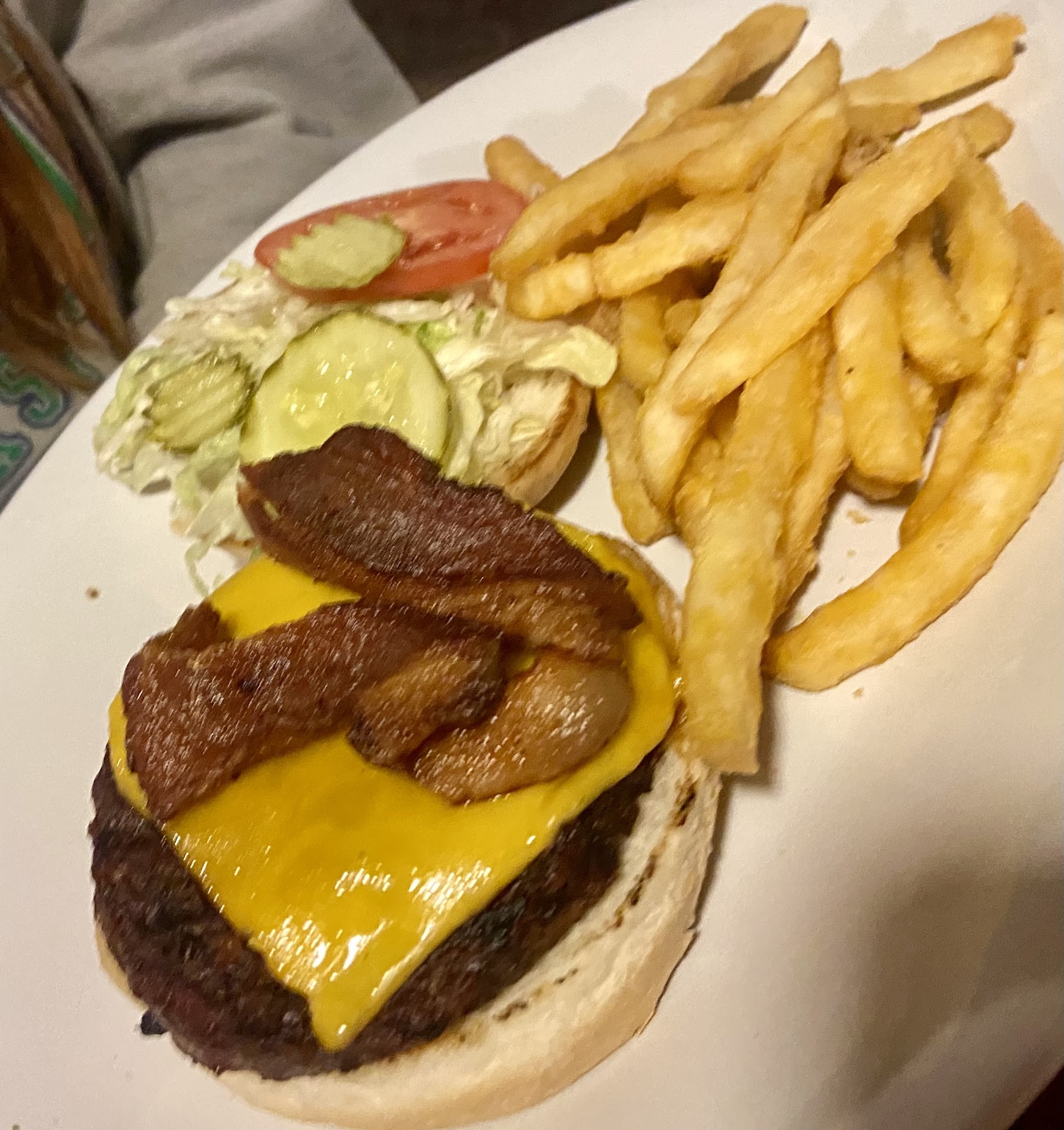 As for the burger, I asked for medium-well and I got medium-rare. Burger was tasteless aside from the BBQ sauce on it. Cheddar cheese on the burger wasn't even melted, as if it were just slapped on top of the burger after said burger had cooled down. Fries were lukewarm.
