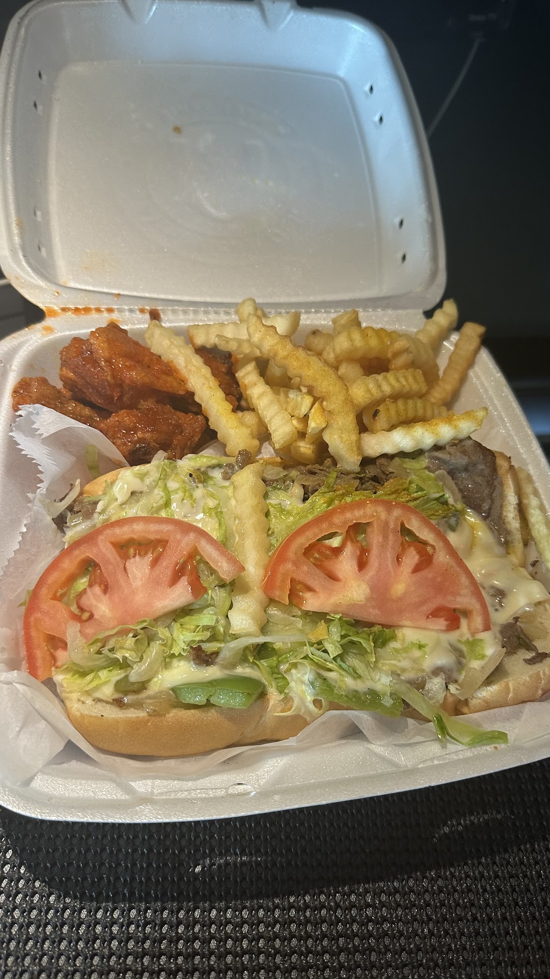 Read moreI've never stepped into this place so my review is soley upon delivery experience. This place has fresh tasty sandwiches both hot and cold. The wings my son says are "banging". The peach punch is worth your time. But let's talk fries. If you like hot crispy crinkle cut fries with a seasoning on em that will have you begging for more than omg this is your spot! They know thier fries are good. Why? Cuz they are NOT shy with the fries. Which is rewarding. They are my fav by far. They've never gotten my order wrong nor was the fries never hot and fresh. I hope this information reaches the kitchen cuz its really loved appreciated. Very fast service here also is a norm. My go-to is the Philly with everything on it. And yes the fries. The bigger drink option is the huge foam cups which are awesome. I've been doing bizz here for 2 yrs now and I highly recommend it to all. Menu is broad enough to accommodate all. Keep it...