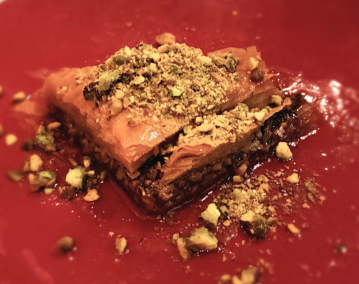 For dessert, indulge in the heavenly baklava, layers of flaky pastry filled with nuts and honey, delicately sweet and irresistibly satisfying. You won't want to share, so order two. Paired with a glass of floral Lebanese tea, it's the perfect way to end your meal on a high note, leaving you feeling content and fulfilled.