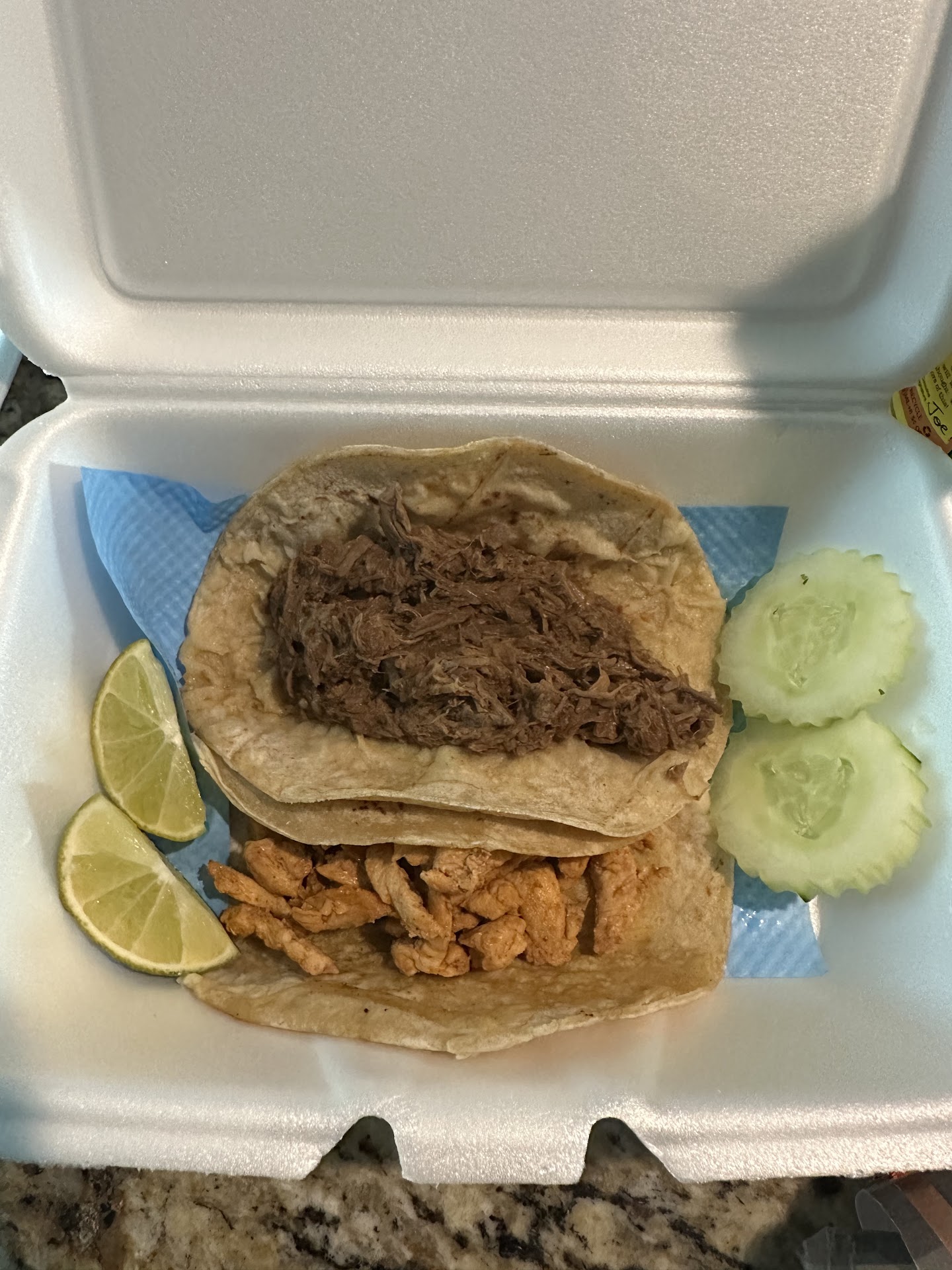 Read moreScore!!! I did a google search for Mexican restaurants in route to work. When I pulled up I was a little nervous. It was not to impressive from the outside. But oh my goodness... the menu was short and sweet. Tacos burritos and tortas. I ordered the steak burrito with rice and beans and an horchata. Everything tasted so fresh and delicious! No exaggeration it was amazing. In all honesty, will say the minced steak tasted -slightly- over cooked in spots, but everything else was -perfection-. The red and green sauce was also 10 out of 10. It was so good I got a second burrito to go for dinner. (Don't judge) Probably the best Mexican food I've eaten in the 10yrs I've been in Charlotte. It's almost an hour for my house, but thank the good Lord it's only 20 min from work. And the famous words of Arnold Schwarzenegger, " I'll be back".