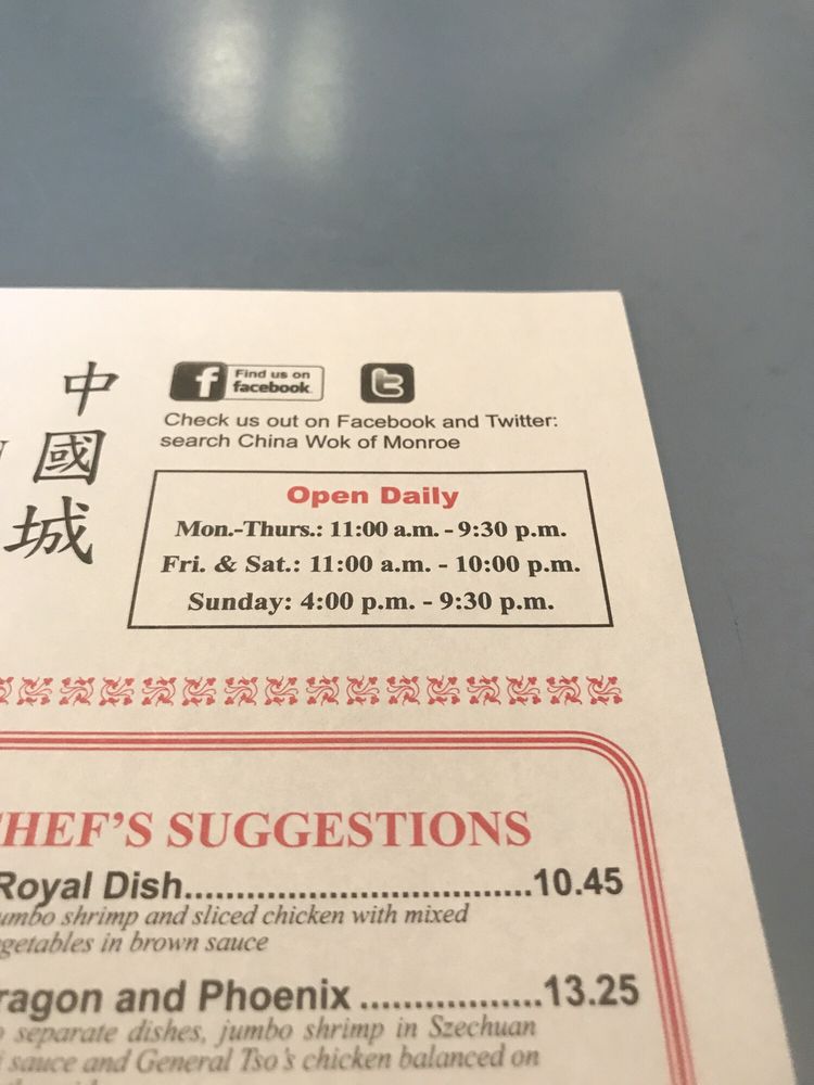 I did NOT visit China Wok in Monroe yesterday, though, I did possibly drive by it - not sure why this popped up as a place that I stopped.