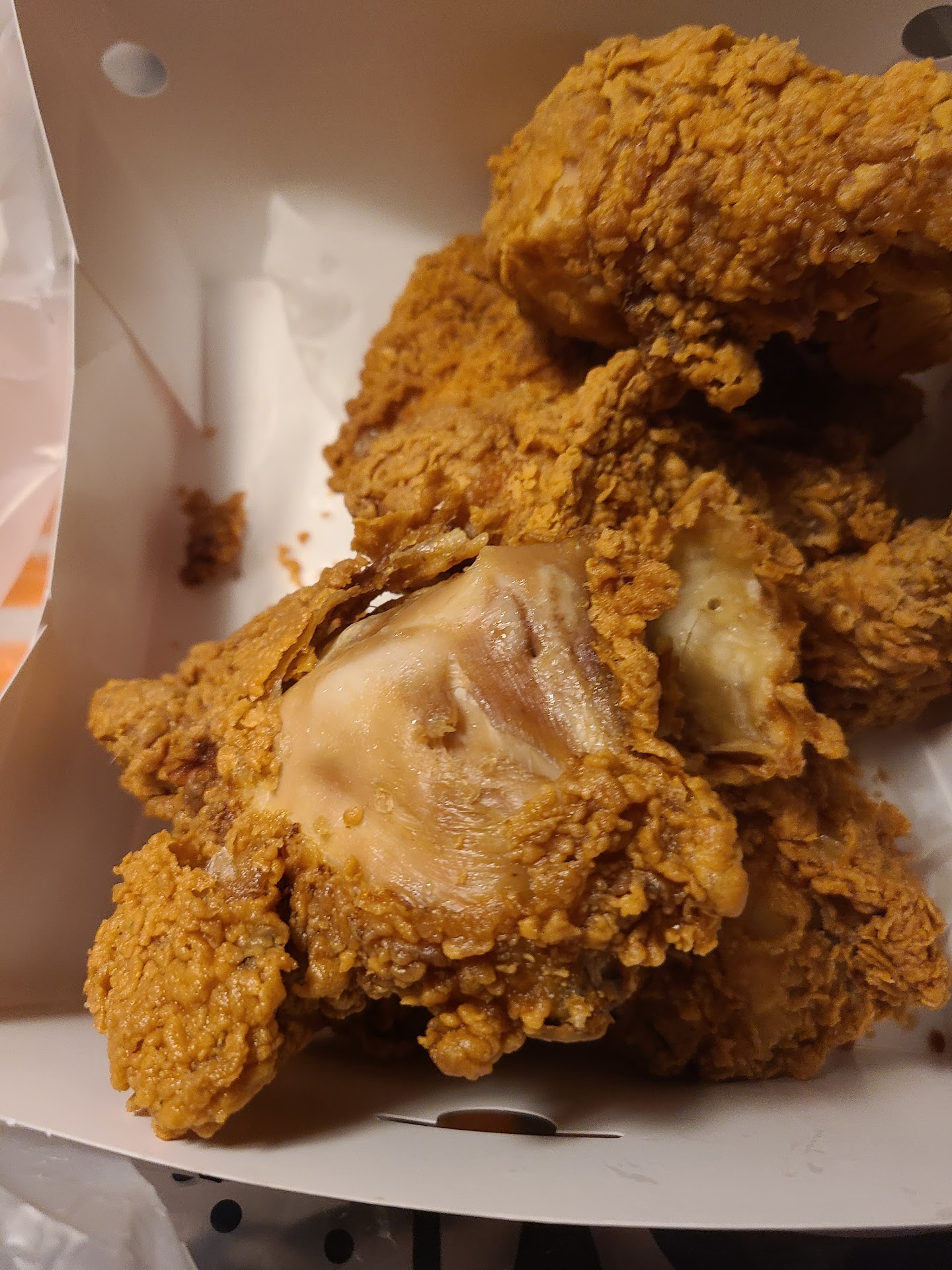 They think people are fools. They serve good hot chicken one time or maybe two then next time it horrible. Why is that ? The chicken is suppose be fresh, the grease should be fresh ,the biscuits should be cooked throughly not you taste the flour in it,the tater tots should be fresh at all times,you don't serve old food nobody . If they want cook the food right give it to people who know how cook and make sure food is devious all time not just whenever . Even though he replaced my order still don't matter when it should been right first time . Then he didn't replace full order . I'm not upset . Fair is fair . It bad to think you spend your hard earned dollars get bad food . It doesn't make no sense . I hope they do better if they don't they going...