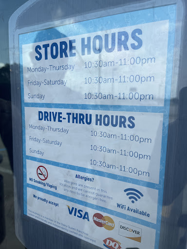 Read moreDQ does not offer a lot of menu options but what they do offer has stood the test of time. How can you go wrong with a cheeseburger, fries, & a thick, creamy milkshake? My personal favorite is the steak finger basket which includes steak fingers of course, crispy french fries with a fluffy interior, buttered texas toast, & creamy milk gravy to dip it all in. Then there's my daughter's favorite, the chicken strip basket which is identical to the steak finger basket with the exception of the chicken. Both are very good. Those are just 3 of the available menu items but the best in my opinion. I also think that it's really great & harkens back to good old-fashioned customer service that you're given a number when you place your order to put @ the edge of your table. The same number is written on your order before being handed off to the kitchen. When your food is ready they deliver it to your table, matching the numbers. They've been doing it that way since I was a child. A long time ago, lol. If it ain't broke, don't fix it. Too bad a lot of other things haven't been done that way. Last but certainly not least, the ice cream. Lots of different treats are available. Treats on sticks, in bowls, in glasses, even sliced treats in the form of ice cream cakes. Anyway you look at it, no matter that there is not an extensive menu, whatever you order you simply can not go wrong. That is what has kept DQ Grill & Chill(Dairy Queen) popular & still in business all of...