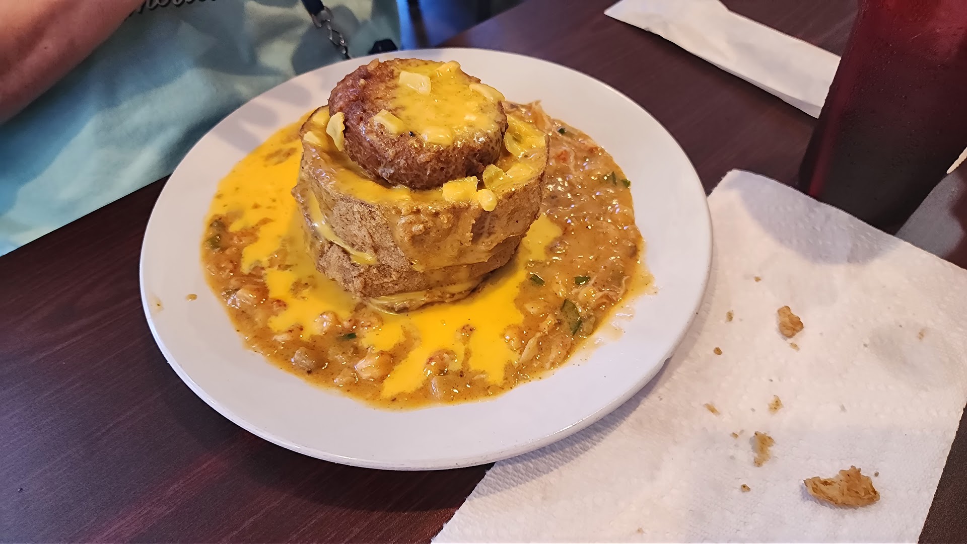 Read moreFirst time here for lunch, and while we did have 9 people, and there were several large tables of equal or larger size. That said, they seated us right away and took our drink and app order. All came out relatively quickly and tasted good. Crawfish boule was spot on as well as the onion tangles. Fried boudin balls were OK, little bland, IMO. Then the fun began, we certainly noticed food not really coming out very quickly after that. Yes, I'm sure it had a lot to do with the large tables and full restaurant, but what really seems to be the bottleneck is 3 servers and the point of sale system in place. To keep up with traffic and turn over the tables, you've got to expand your system. Having one person ring up and check out tickets while servers are waiting is way outdated and will be painful in the long term.