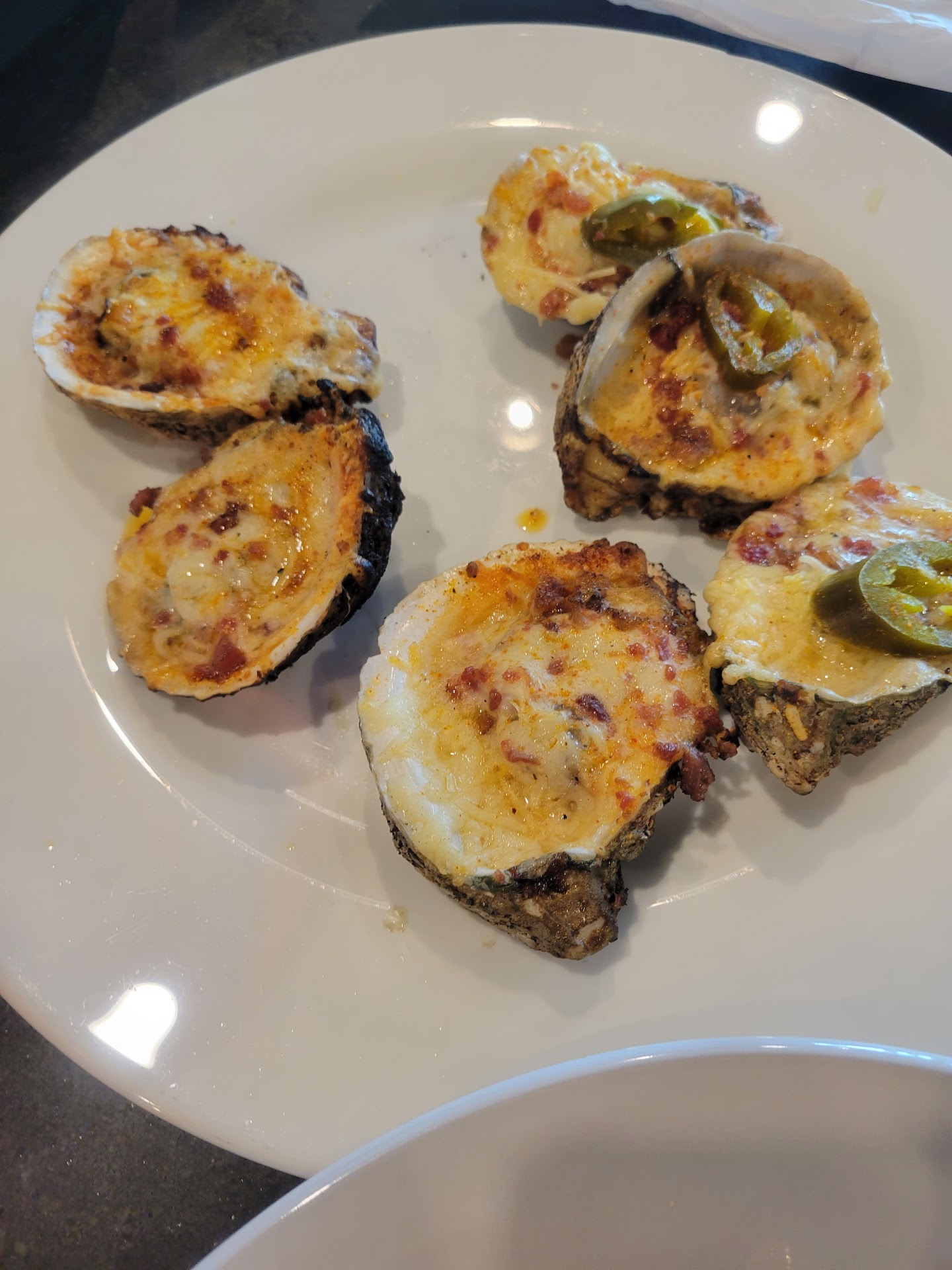 Started with a side salad that was basic shredded iceberg and way too many cucumbers. The salad dressing was a disappointment as it came from a jar rather than homemade. Gumbo was ok. A bit thin and not seasoned. It did have a smoky flavor from the sausage and the dark rue. The rice was sparce and very bland. Crab cakes pre-made frozen (very similar to what I buy at Brookshires). They were spicy with a lot of breading. and served without any sauce, they were my lease favorite thing ordered. The Shrimp Creole was fairly bland with a hint of sweet that was off-putting to me. The bread was good, though. The charbroiled oysters were the best thing ordered. They were quite good and served piping hot.