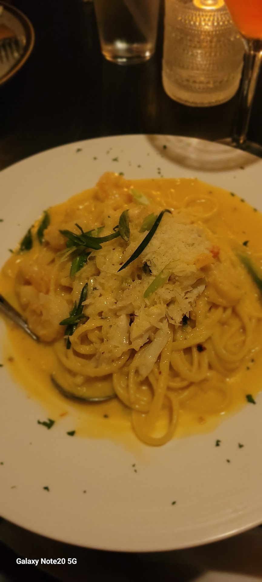 But the main course—oh, the main course. A 9 oz filet, cooked to medium perfection, so tender and juicy it almost seemed like a sin to eat it. The seasoning was masterful, as if the steak had been kissed by the gods of flavor themselves. And then, the genius move: pouring the extra Alfredo sauce over a side of garlic noodles. It was the kind of pairing that shouldn’t work as flawlessly as it did, yet it transformed an already exceptional dish into something otherworldly. The richness of the Alfredo clinging to the garlicky noodles was pure, unadulterated bliss.