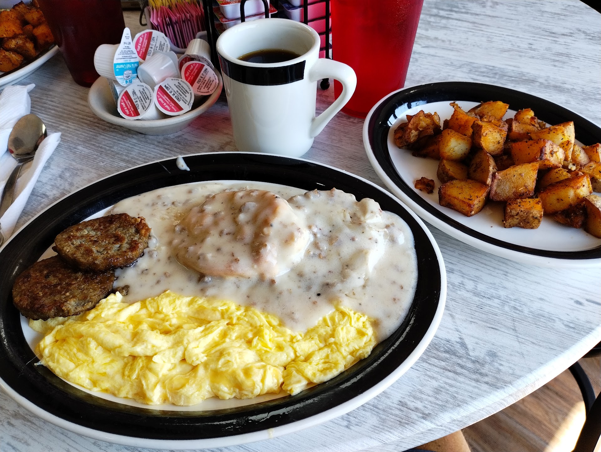 Read moreA first time visitor like me may not expect from the location and exterior to find such a gem behind the doors. Yet, voila, this restaurant is definitely a diamond in a coal mine. I got a simple carry-out order of a garden omelet with home fries and two egg and cheese biscuits. The home fries were for my husband who was waiting in the car, yet a mysterious creature ate half of them before he got them because they were so, so good. I only meant to peek at his order, but the scrumptious scent of seasonings hit me and I had to taste just one, then two, then a handful... My bad.