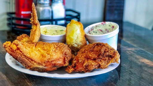 Read moreNow you might feel differently, but I PREFER a local spot with really good food over a national restaurant chain ANY day . . . and TWICE on Sundays. Take me literally today . . . it IS Sunday and I was craving a piece of friend chicken moments ago. So I looked up and saw the sign, "Hathaway's Chicken & Biscuits" and my reptile brain took over. It was a meteorite, you see, that wiped out the dinosaurs . . . but their preternatural ability to suss out a tasty 2-piece and a biscuit still lives within us -- if we will but listen closely. Listen closely HERE and the locals will tell you how moIst and tender is the chicken. How flakey the biscuits are and precisely how savory the sides. Watch as they load up on take out plates INCLUDING gallons of the excellent iced tea and lemonade. If you cannot quite hear your own inner dinosaur (aka chicken-eating chicken), take a listen to mine here: