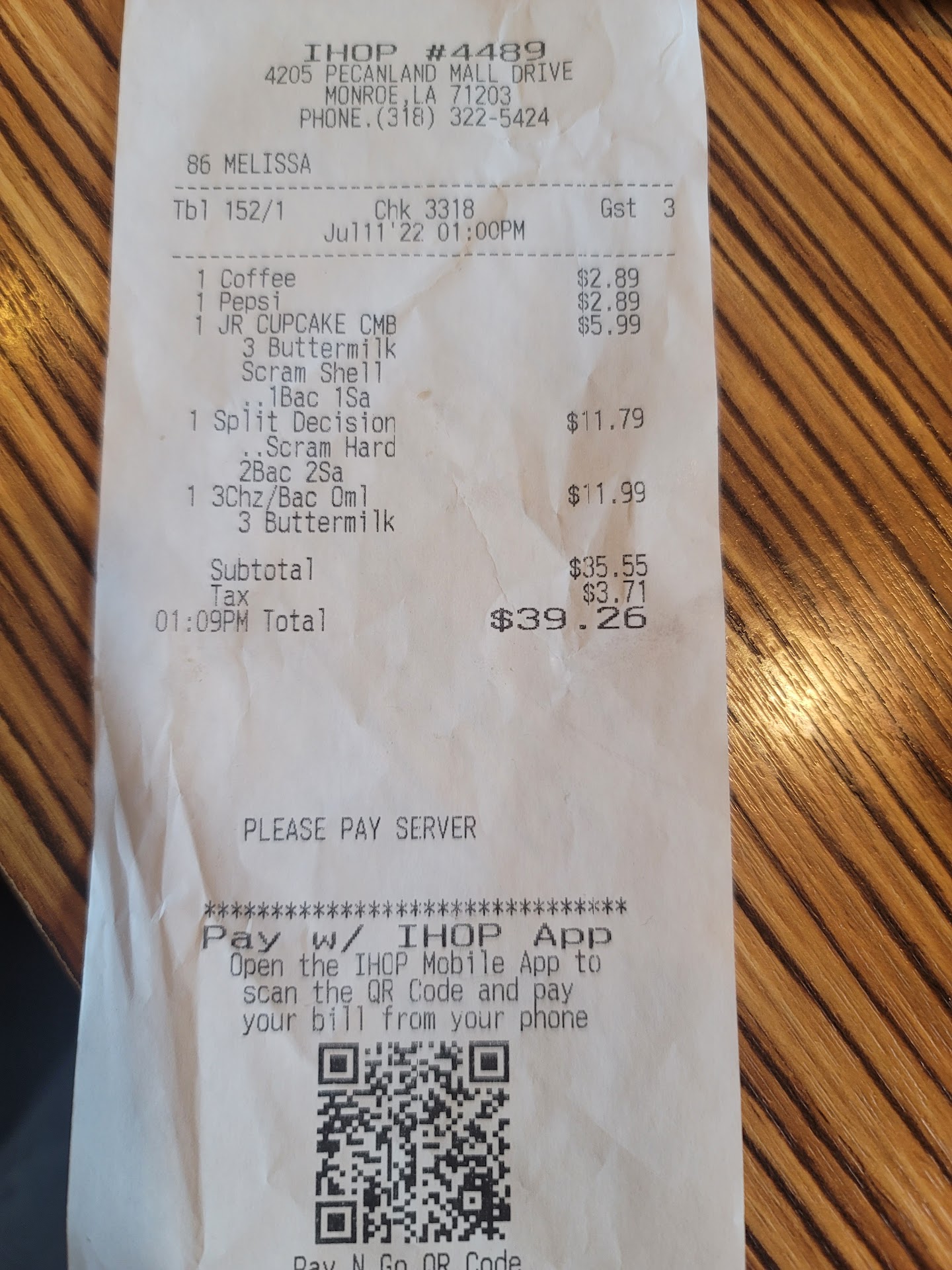 Read moreHad one extremely horrible experience from a waitress I am assuming was Melissa per my receipt...she gave one bad experience after another and then continued on yelling at her Co workers..then a lady who said she was a manager asked of we were ok and I told her "Actually no" and the waitress we had should be immediately fired for not only horrible service to me and my family but also yelling at her co workers and she said "well I'm trying to give her a chance"...ummmm NO... she had her chance and should be fired... should be noted a customer before me had made a major complaint and there was also another couple who got up and left due to lack of service while I was there..she actually had the gall to say she was overwhelmed when the entire restaurant was empty.. I would sure hate to see her during a rush.. I'm pretty sure I won't be back to IHOP no matter how much my family wants to go...and I should add the air conditioning system in this place SUCKS for LA heat and humidity.. very miserable to Dine here..Update 7/27/23..Conditions here are horrendous.. no customers should have been a clue.. miserable conditions..No air..Horrible Service...Horrible food..What the heck are they doing here??? Should be shut down just on Sanitation issues by itself..the manager here should just hide under a rock.. OMG ..worst worst worst worst experience ever in...