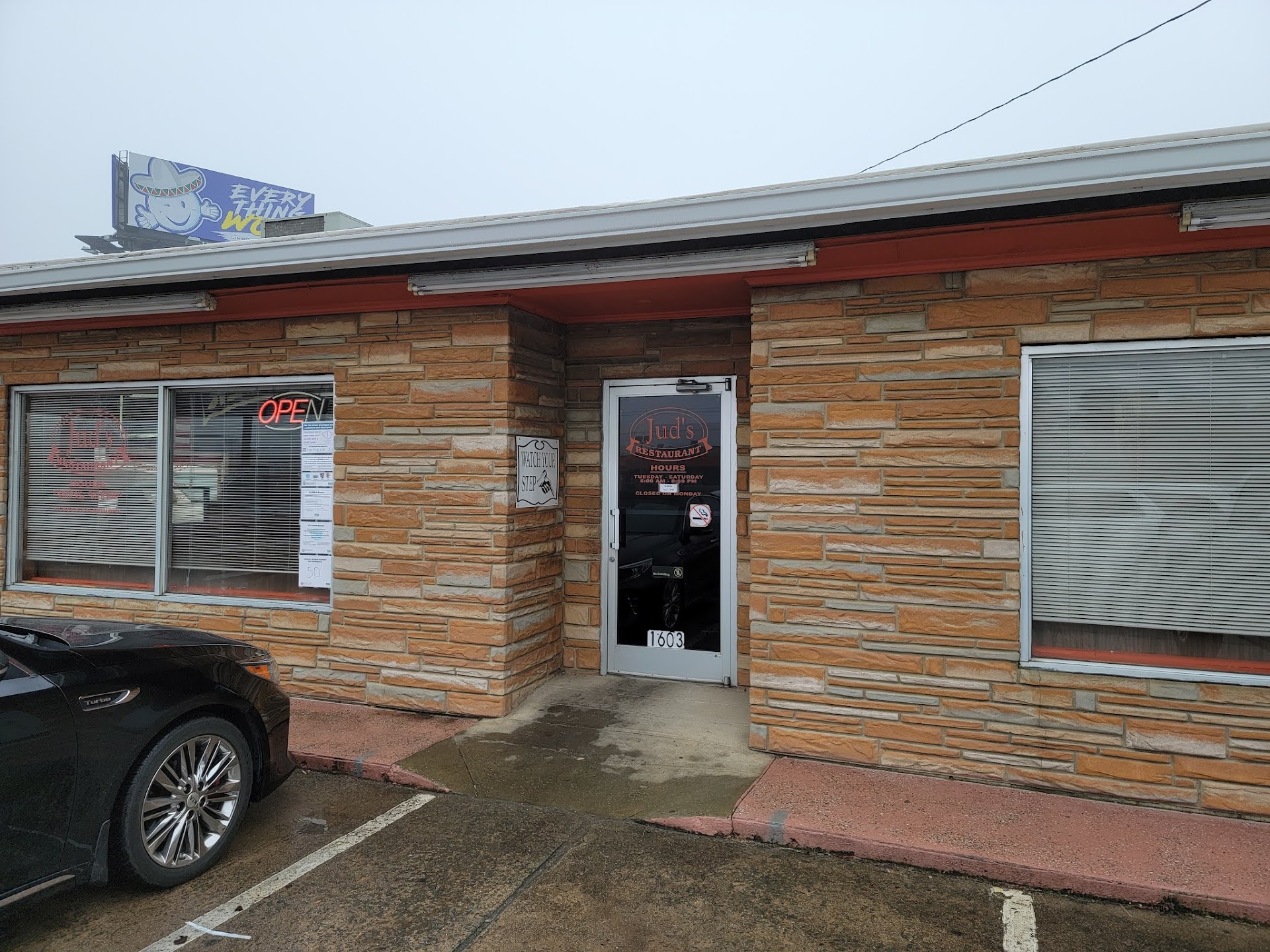 Jud's is a small, diner-type family restaurant that serves what most would consider 'country cookin'. They seem to run out of the daily meat special by 2 p.m. most days, so if you're going for dinner you're just out of luck. The food is hit or miss a lot of times, but the wait staff is always extremely friendly. This is one of my Dad's favorite places to eat right now, so we go regularly...... and it's more for the waitresses than for the food for me. They always have a smile, they're always in a good mood, they're attentive without hovering. Their club sandwich and grilled (or fried) chicken chef salad are very good.