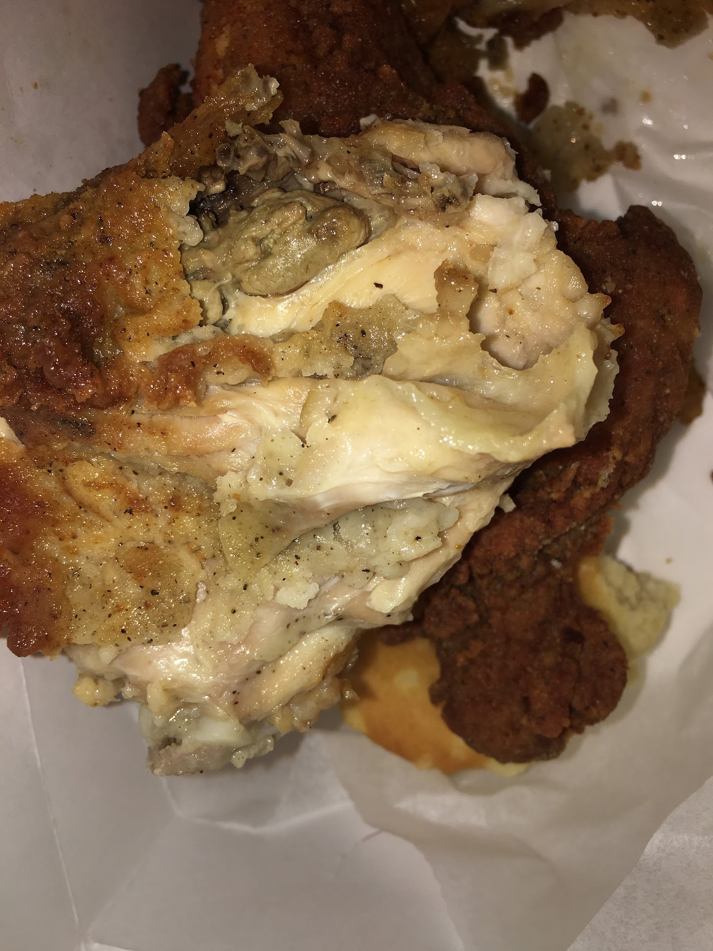 Read moreI had to wait 5 minutes at the drive through window to order even though no one was in front of me and they weren't busy. When i finally made it to the pick up window, I paid and had to pull forward and wait another 15 minutes for a box of chicken and mashed potatoes. When i was handed the food, mashed potatoes burnt through the bag and burned my hand while it dripped all over my pants and my car. They didn't put the lid on at all. It was on the other side of the bag, just tossed in there. It took another 5 minutes to get a new bag and new mashed potatoes with the lid attached. Popcorn chicken was also not very good and...