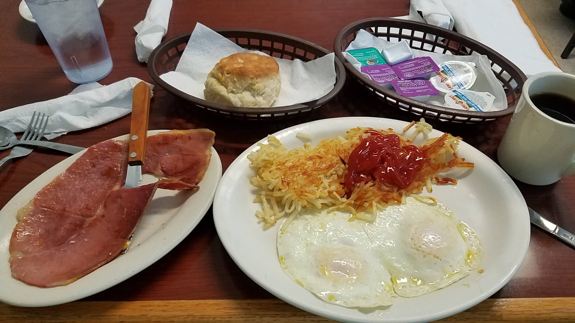Read moreNormally when we eat here the food is great. Today it was terrible my grits were not hot enough to melt my butter and cheese. They switched them out and they were still not hot but check this out. I only ate the country ham and a biscuit. When we went to check out not once did the management apologize for serving me cold grits twice she only asked if I was offered to get them switched. I said yes but they were still not hot. No apology. All I wanted was grits that would melt my butter and the cheese that I was going to...