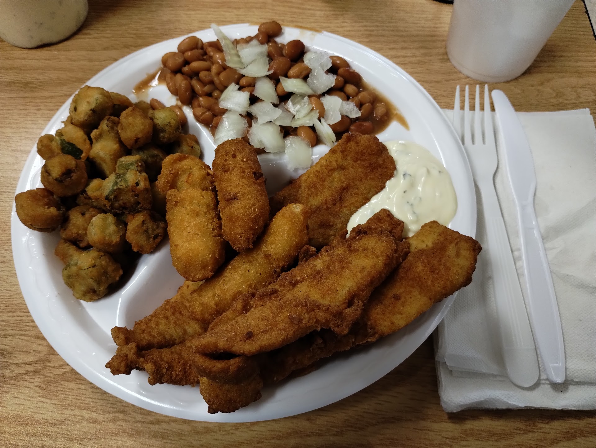 Mac's is fantastic! They have the absolute best fried baby flounder in Monroe! Today I ordered mine with fried okra, pinto beans w onions, and hush puppies! So delicious!