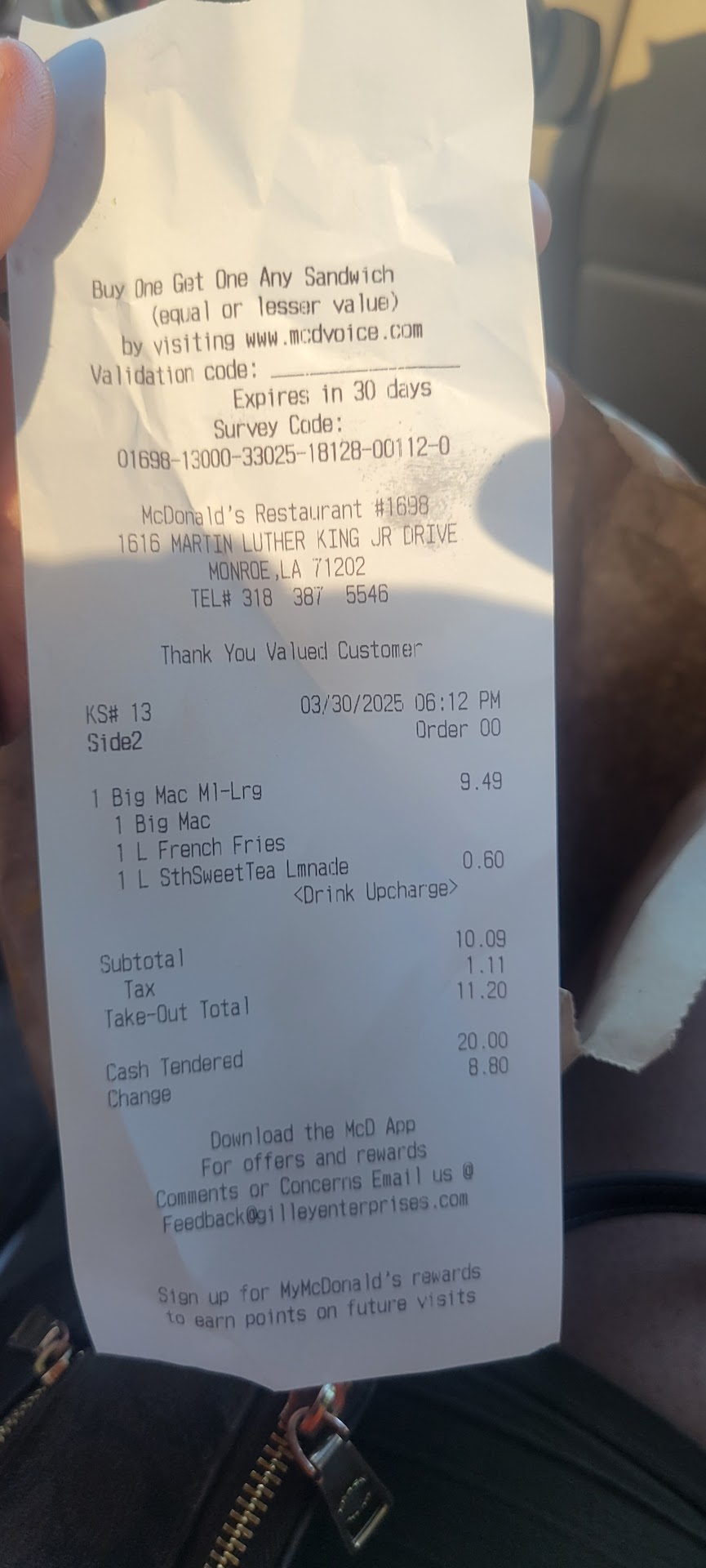 Read moreWe went through the drive through and the girl was super slow and we couldn't understand her. She wouldn't put our sauce on the order. And on the menu it says one price and she kept ringing up a different price and was very stupid about it. I have a picture of the menu and price. When we got to the window to get our food, we were given our first order and about 5 minutes later the manager came to the window and reached into our car for the bag and said it was the wrong order and she yelled at us that if it was white paper it was the wrong order and she snatched it back, I'm sure to give to someone else, which is ridiculous. Once it goes into the car, you are NOT supposed to take it back. Then the girl that was working the window a chunky black girl with braids, was super rude. We asked for ranch because we had already asked and she didn't give us any and she rolled her eyes.. very unprofessional, false advertising, and rude employees that ALL need to be fired. Or apparently the regional manager needs to be fired. I also have a picture of my receipt and I...