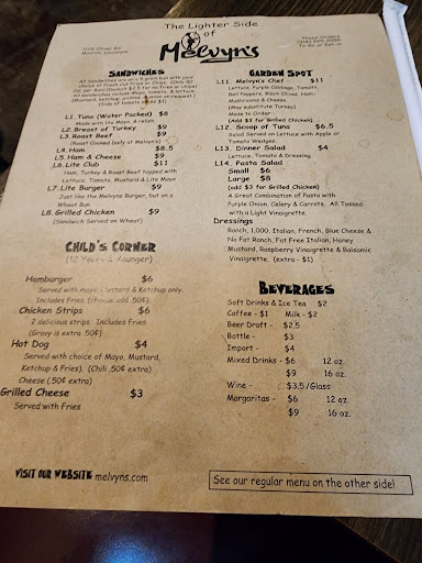 Read moreI finally tried Melvyn's last night and I was disappointed. While our fries were good, our cheeseburgers were served cold after having to WAIT! The same thing with the cheese sticks. Instead of being hot and gooey on the inside, they were solid in the middle and the outside just flaked off. Since they didn't give us plates for the appetizers, the crusts just fell all over the table. Perhaps there is miscommunication between the wait staff and the kitchen that needs to be resolved.