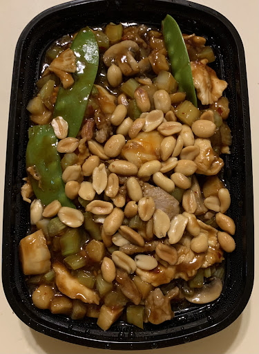The sesame chicken is also served in a lake of super sweet, gelatinous sauce, with more sauce than chicken (and 3 pieces of broccoli). The chicken breading was soggy, and several pieces of chicken were tough and inedible.