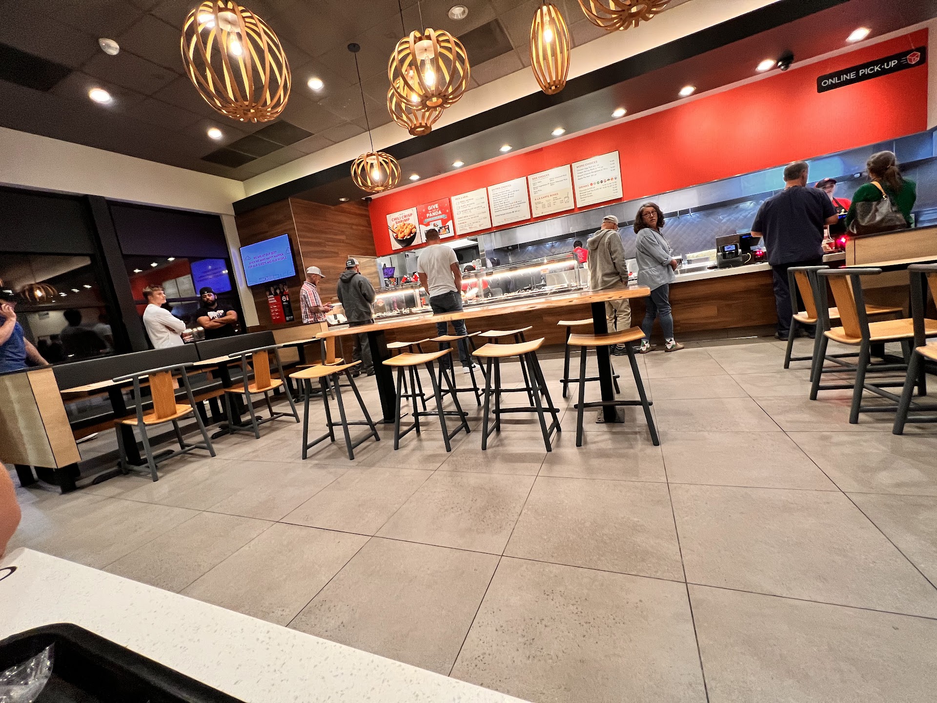 My girlfriend and I ordered Online to be ready for pick up around 1:05 PM , which I have provided the order transaction for this review. So I decide to go drive there, line is full and warping around the shopping plaza where this Panda Express is located. I notice there is not a sign for curbside pickup, but hiring now. I get there around 1:06 PM, a little late but promptly. I am trying to notice an area to park and collect my order ahead of about eight cars in front of me blocking the path from parking up front. I see a guy in a truck, We'll just call him Sam. Sam pulls up beside the line and confirms his order on his cellphone and waits, I'm only assuming, don't personally know what he did. So he gets his food and I stop and ask the lady, "Hey I'm here to pick up an online order." Then she tells me that I will have to go through the drive-thru like everyone else. So I wait and wait for about 25-30 minutes before I finally get to the order window. I state my name, and I'm here to pick up an online order. No problems here.