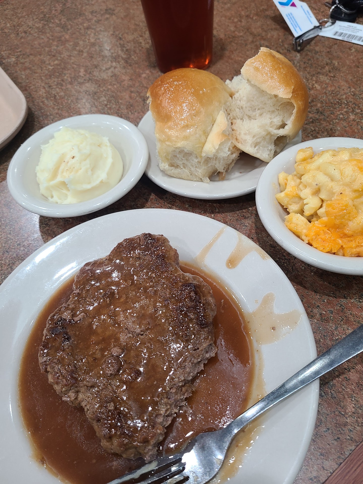 Read moreVisited with family on 09/11. Mom had stuffed fish ( cold) , Mac and cheese (cold , no season) broccoli and rice casserole (cold , and mushy) I had fried chicken (delicious) , cabbage (cold and had an over powering vinegar taste) mashed potatoes and gravy ( ice cold but well seasoned), GF had fish ( cold but well seasoned) Mac and cheese (cold , over cooked underseasoned) hush puppies (cold and underseasoned). I also had a side salad but was unable to eat it due to a rancid smell to the salad, I believe it was the bacon strips. My nephew (3) had tenders broccoli and cheese and macaroni, and everything was cold and he refused to eat. He also had a slice of pecan pie that tasted like cornstarch. We basically paid $51 for 4 drinks and a tasty red velvet cake. We were unable to locate our waitress to voice our concerns. My nephew was getting cranky so we left and ate else where, will not...