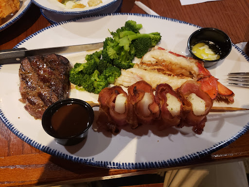 Arrived around 8ish on a Tuesday evening, there was no wait time so we were estatic. However there was only a small section opened and very few people there which was odd, but we soon discovered why there was so few people there. The waitress was not only our waitress but also our hostess, she was very duranged and didn't even know what dressing came with a ceasar salad. Then my two aquaintances and I asked about the 3 entree meals for $22.99 and the waitress/hostess explained to us that all three meals came with two sides, we were once again estatic. After we ordered we waited patiently for our red lobster biscuits which is what red lobster is well known for. 20 minutes later we had to seperate from our dining table to ask politely for the biscuits we have so patiently waited for. Finally at 8:45 we got our biscuits many minutes later came our $22.99 meals along with my burnt medium rare steak Then around 9:15 we once again seperated from our dining table to politely ask for our checks. Then the total was $51.96 for our three entrees of $22.99 we were very bewildered. After lots of confusion with the dillusional waitress/hostess she brings out her manager who explains the waitress/hostess incorrectly informed us on our order and we got all three individual meals. After this confusing the manager most graciously gives us $5 off our $51.96 ticket by charging us seperatly for all our sides except one salad which was the $5 because it came with the $22.99 meal set which comes with ONLY ONE side. I do not recomment this red lobster by any means and never plan on going...