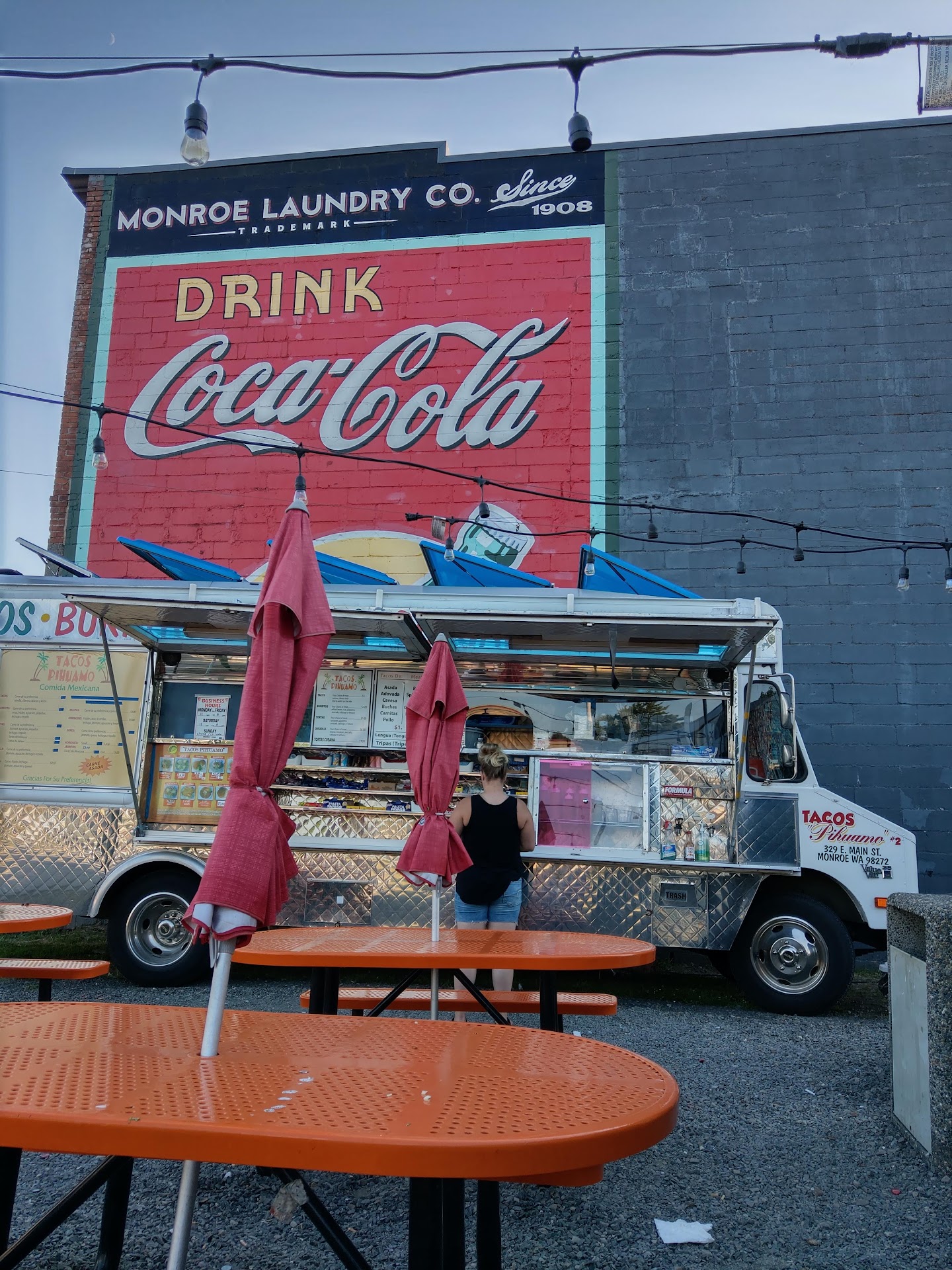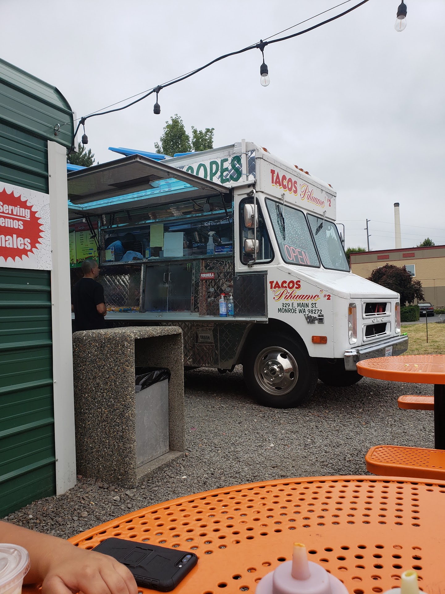 The prices are very comparable to the other tavo trucks around Monroe. I go to 2 different taco places. Truly depends on the direction I am heading. I had taken a Lil helper with me this day. He had done some lawn work for me so I payed him and took him here. He ordered lengua tacos and horchata, I ordered asada tacos and a soda. We had started to eat and I stopped to take these pictures really quick. I tried lengua for the first time and it was absolutely delicious. At first I was like hello no haha. But I like first's. Try something for the first time. The seating is covered and also has umbrella covered outside seating. They do get busy around lunch time. But the wait doesn't ever seem like a long time. Very pleasant and quick with orders. As well clean establishment overall. Kid friendly...