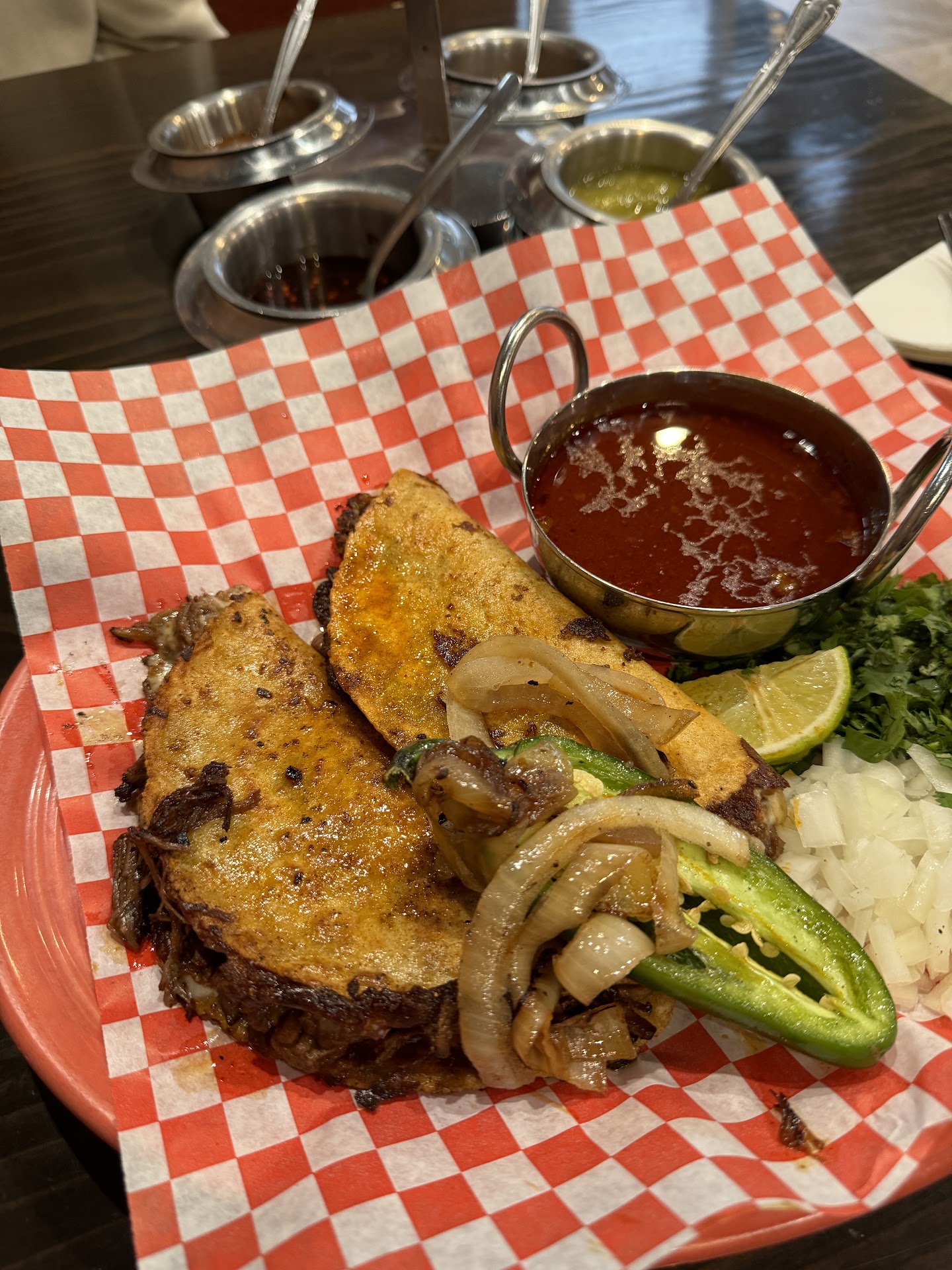 And… they have LEGITIMATELY hot house-made hot sauce. Guessing 100k+ scovilles based on my experience. It’s the dark, dark hot sauce on the quad-tray.