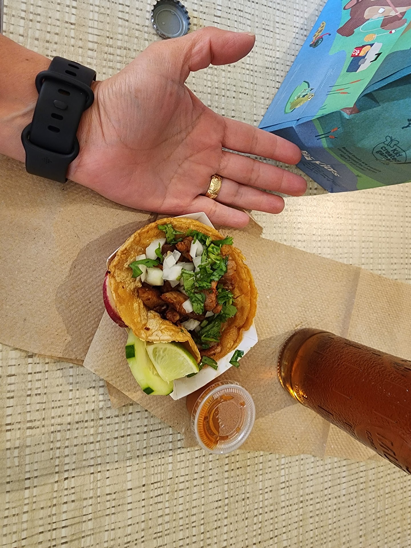 Read moreReally good taco. I just ordered 1 to try it since my kiddo had wanted Chik fil a next door. $3 for this little al pastor taco though. If it had been a legit al pastor then maybe. But it wasn't that shaved moist delicacy that I know from street tacos. It was big chopped chunks on doubled up small stiff tortillas. It came with a little chunk of lime, rabano and pepino and salsa. Guess that's how they justify the $3 🤔 But the service is courteous and quick. The taco was good but I could see 4 for $12, not 3 for $12. That's without a drink. The torta de milanesa was $8 if I remember the menu...