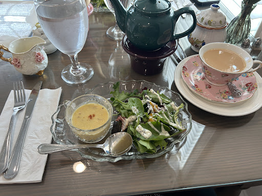 Read moreWhat a gem of a tea house for a delightful afternoon. Whether you are solo, a duo, or a group out for fun this is the place to impart some lovely conversation, delicious food, treats, and of course some of the best tea ever. We enjoyed the Sandwiches and Savory option with a chicken salad croissant, salad with poppyseed dressing and a perfect amount of Mac and cheese. We had trouble deciding but managed to love everything. If we had more room we could have ordered more! So many options. I loved the choices and best part, everyone in the party can order what they want. You don't have to do the same dishes/tea/etc. - great for those dealing with any health restrictions or dietary restrictions. But you never feel like you are missing out! We ended our meal with a scone and it was so worth it. Even the fruit on the side was fresh and amazing. Each touch is perfect. No need to rush. Busy event going on in downtown so just be prepared to find alternate parking but what a great opportunity to have so many fun things happening in downtown! This is the best addition to Monroe yet. We loved our service and conversation with the owner and her family - they welcomed us, answered questions, and spent great time relaxing and drinking our tea. So many choices. All delicious. What is awesome is the bottomless tea means you can try different varieties and my friend and I chose and sampled. What a treat. Make your reservation and get to the newest treasure in Downtown Monroe. We...