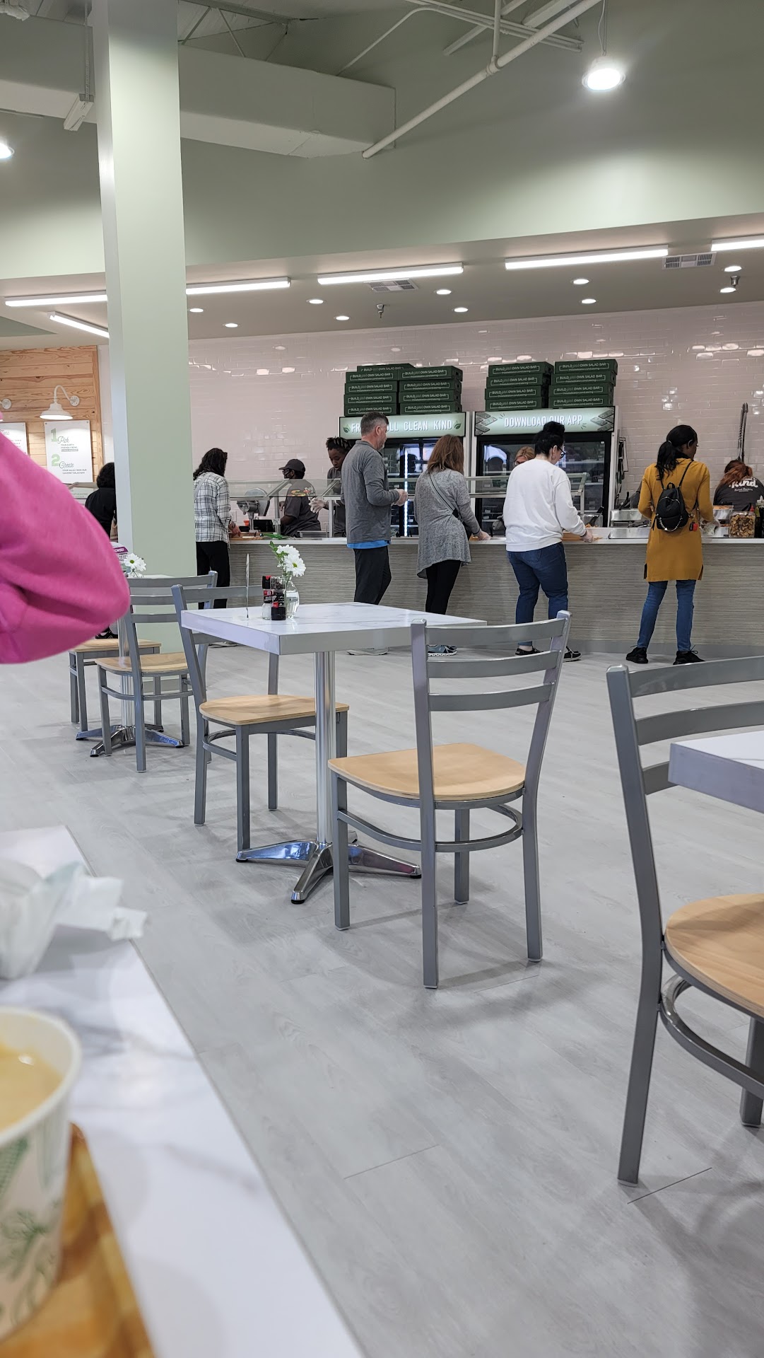 Alone or with a companion, sit down and enjoy an excellent meal, tasty and nutrious, in a setting that is pretty, quiet, and comfortable. And if your eyes are larger than your stomach, pop on the bowl's lid, request a bag, and enjoy the rest of your salad...