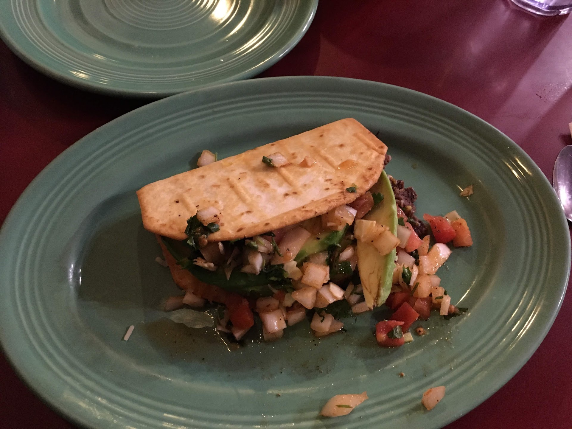 Then she disappeared. I was happily drinking the great margarita when my daughter pointed out that they hadn't come back to take our order yet. That's when I realized that while we had talked among ourselves about our food we hadn't had the chance to order yet. We'd been there for over half an hour. A quick look around saw one waitress standing idly by the back door and the other no where in site. I attempted to flag one down and while it looked like she was coming over she then detoured and ended up back by the back door again standing idly.
