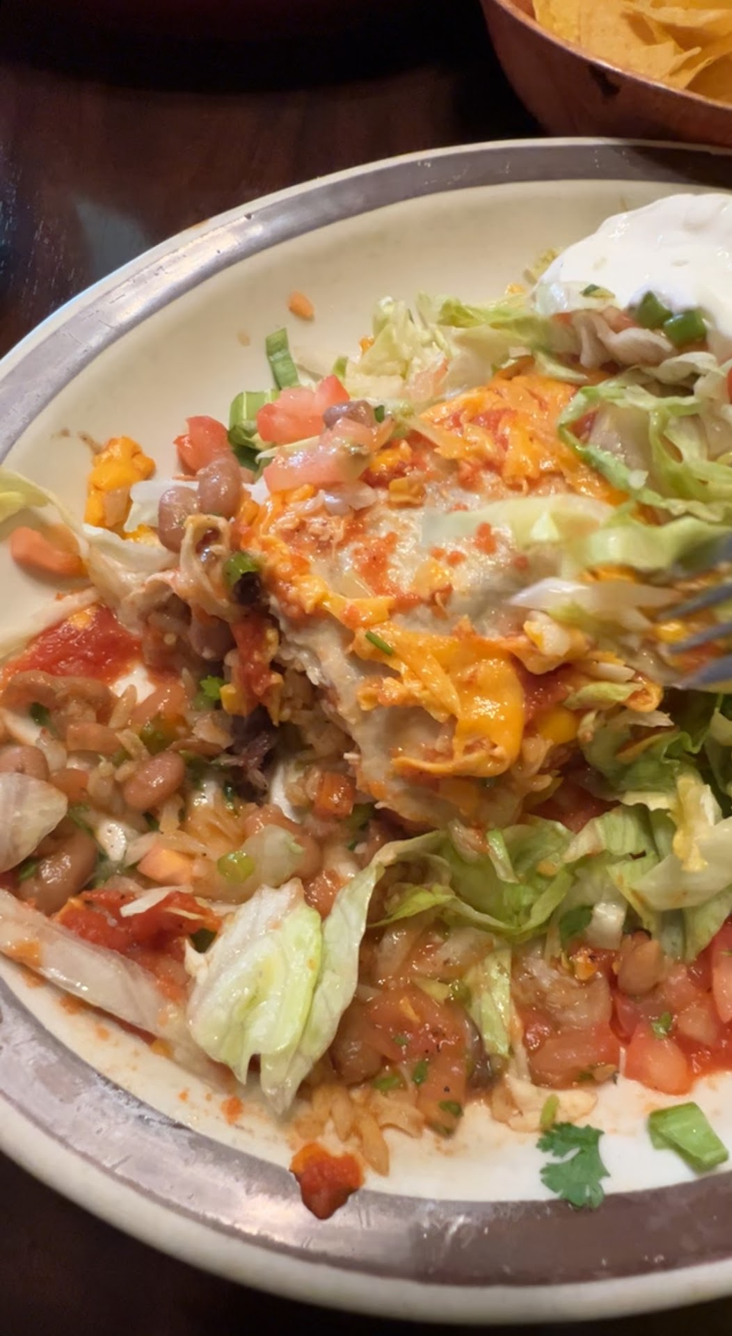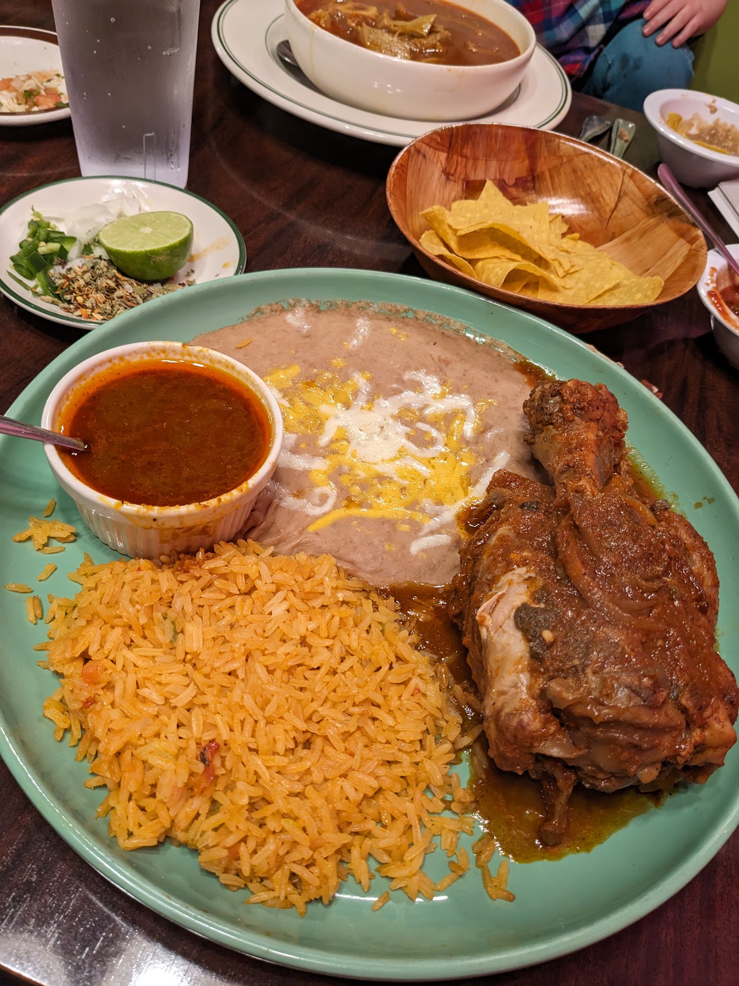 Restaurant is clean and table service is good. Food tastes good if it has all the ingredients in it. Portion is small. Pico De Gallo portion was tiny and served on a small flat saucer which makes it difficult to dig in. Hot sauce for chips was reasonable. The bean dip was good and a pleasant surprise. The refried bean on my dish was specially good and I don't usually like the refried beans.