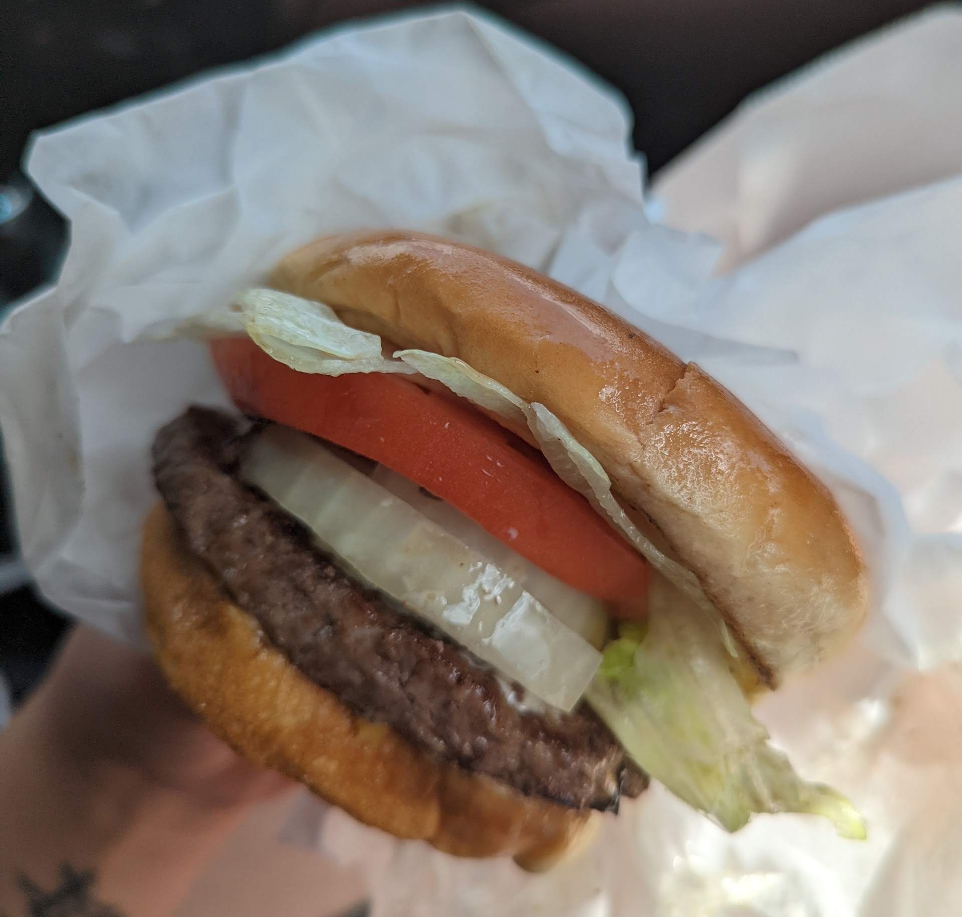 I had my favorite; a double cheese deluxe and it did not disappoint. Hot, juicy, cheesy, and with just the right amount of mayo, mustard, tomato, onion and lettuce. I don't really like lettuce on my burger, but they did it the right way with the lettuce on top of everything else, and not directly on top of the meat.