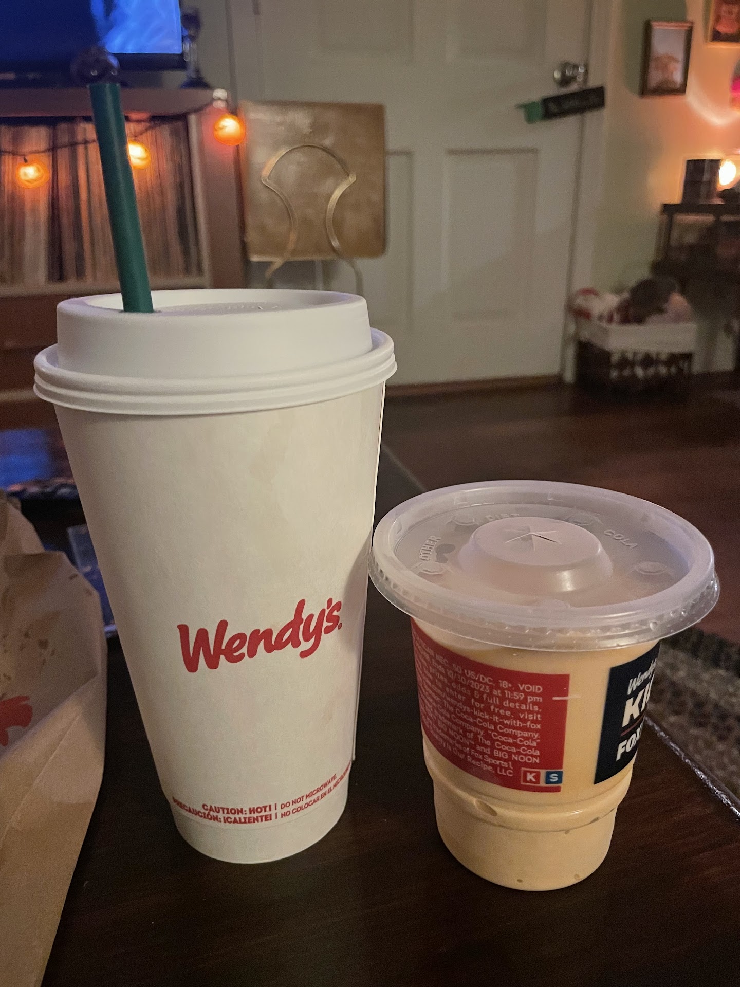 Read moreMy last 3-4 experiences at this Wendyâs have been terrible. Every time they either make me pull up and wait for my order, or back up and pull back up in the drive thru to reset their timer. Then they always forget something whether itâs fries, sauce, or straws. Last night they forgot my large fry, and gave me my large coke in a togo coffee cup because they were out of regular cups allegedly. That didnât bother me that much. What bothered me was I ordered two medium Frostyâs and they had the AUDACITY to tell me that this was a medium. Honey thatâs a small AT BEST. Definitely wonât be going back. Sucks since itâs so close to my house, but Iâll gladly drive to North 18th for better...